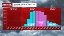Heaviest totals will be at higher elevation north of NYC where it will be snow all Sunday into Monday morning. Areas around Poughkeepsie could see the highest totals, with 18 inches or more possible. The Hudson Valley, Connecticut and the northernmost parts of New Jersey could get 12-18 inches of snow, while Central Jersey and Long Island will see similar totals to the city.