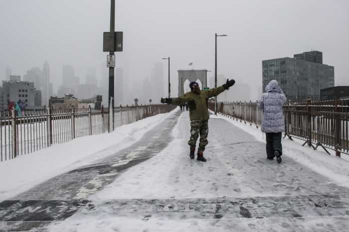 winter stormYoung Brooklynites take advantage of the winter storm and sled in Dumbo.Photo by Erica Price winter stormThis Brooklynite skied around the neighborhood in the winter storm.Photo by Erica Price