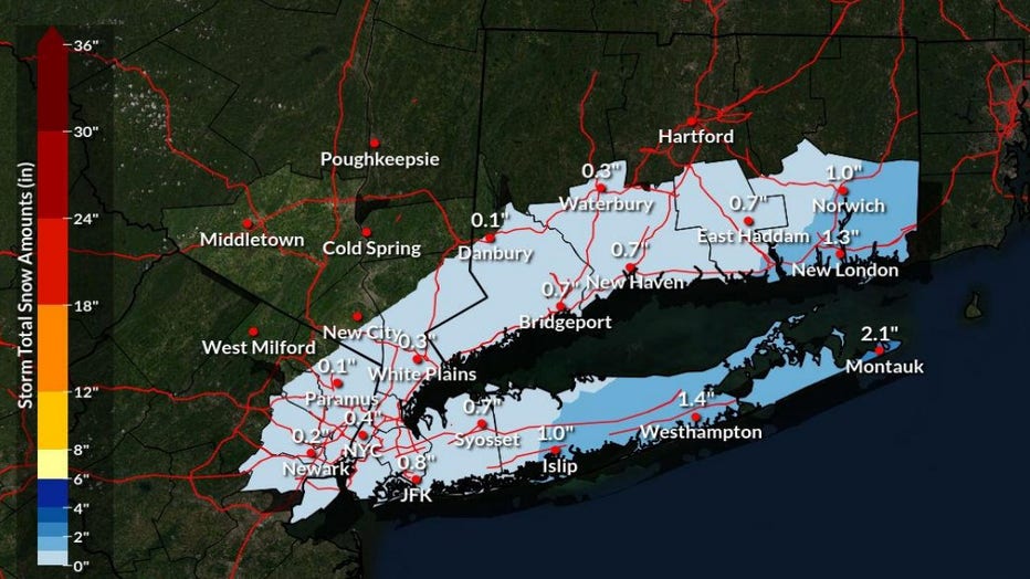 Parts of Long Island could see 1 to 2 inches of snow this Sunday; the rest of the state will not see much snowfall.