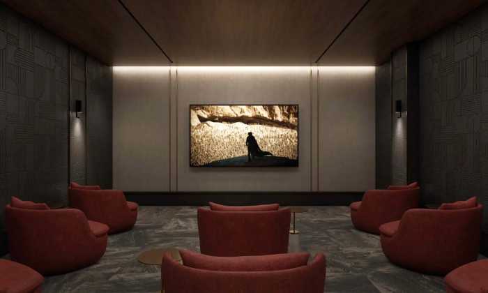 In addition to the podcast room, art room, and ball court, the complex includes a children’s playroom, gym, dog run, theater, backyard, rooftop terrace, and bike room, according to the lottery listing. Some amenities cost an additional fee, it adds. Apartments have air conditioning, washers and dryers in unit, and mini-split heating and cooling.
