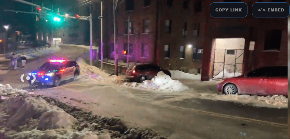 YONKERS POLICE ARE seen in snowy conditions in the vicinity of 90 Caryle Avenue in Yonkers on Thursday night, Jan. 29, 2026, after they were alerted to a report of a man who had been lying on the road at West 262nd Street and Broadway in the Mosholu / Riverdale section of The Bronx and was later dragged under a car 0.4 miles as far as Yonkers, where he was transported to Jacobi Medical Center in The Bronx in critical condition.