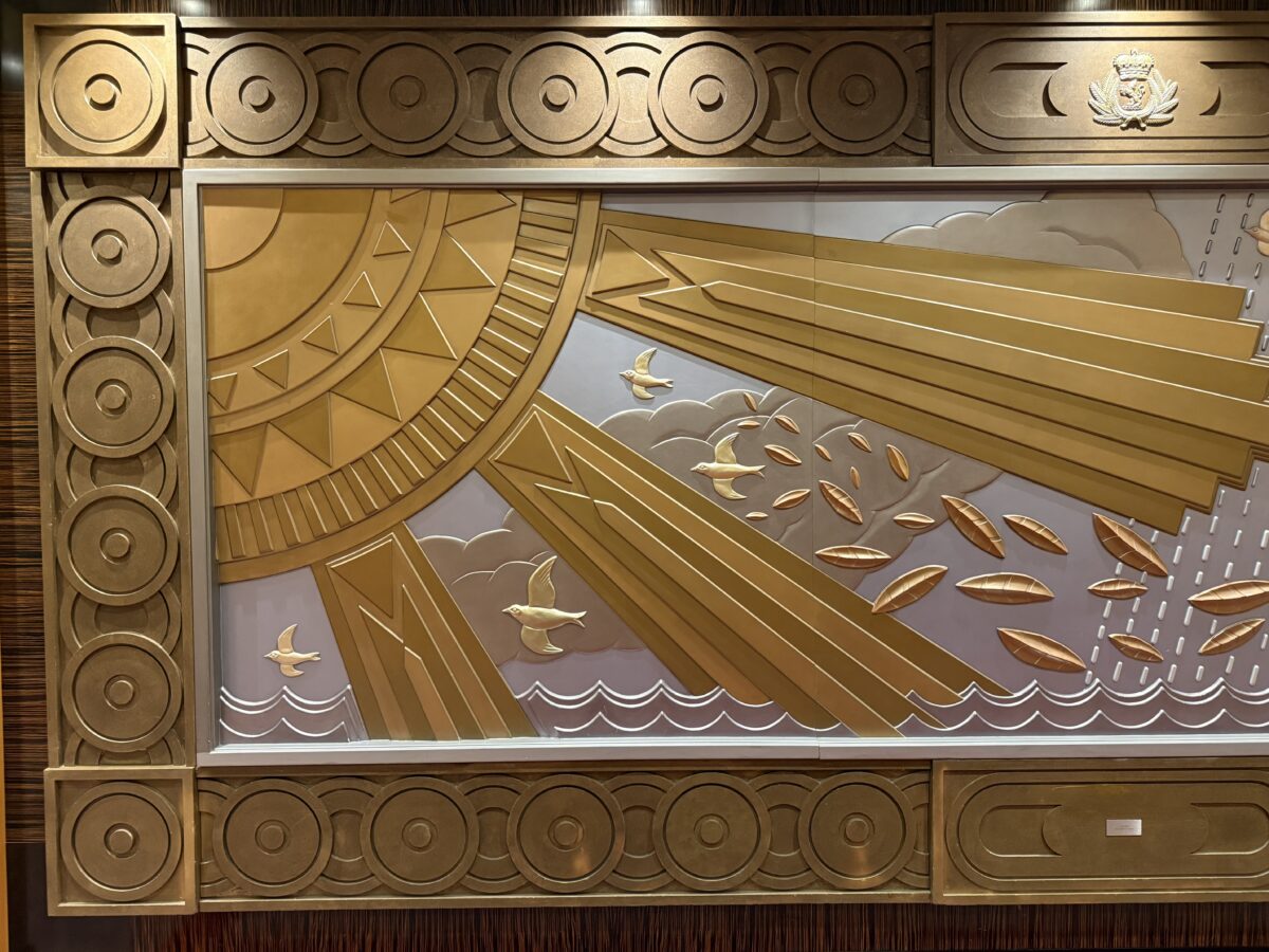 Upon entering the Queen Mary 2, your eye is drawn to the outrageously decorated giant silver “Boston Commemorative Cup” locked behind glass. The trophy was created for Sir Samuel Cunard when he launched his first steamship, Britannia, in 1840 and chose Boston as his American port. The artifact was discovered in an antique shop in 1967 and always sailed on Cunard’s flagship.