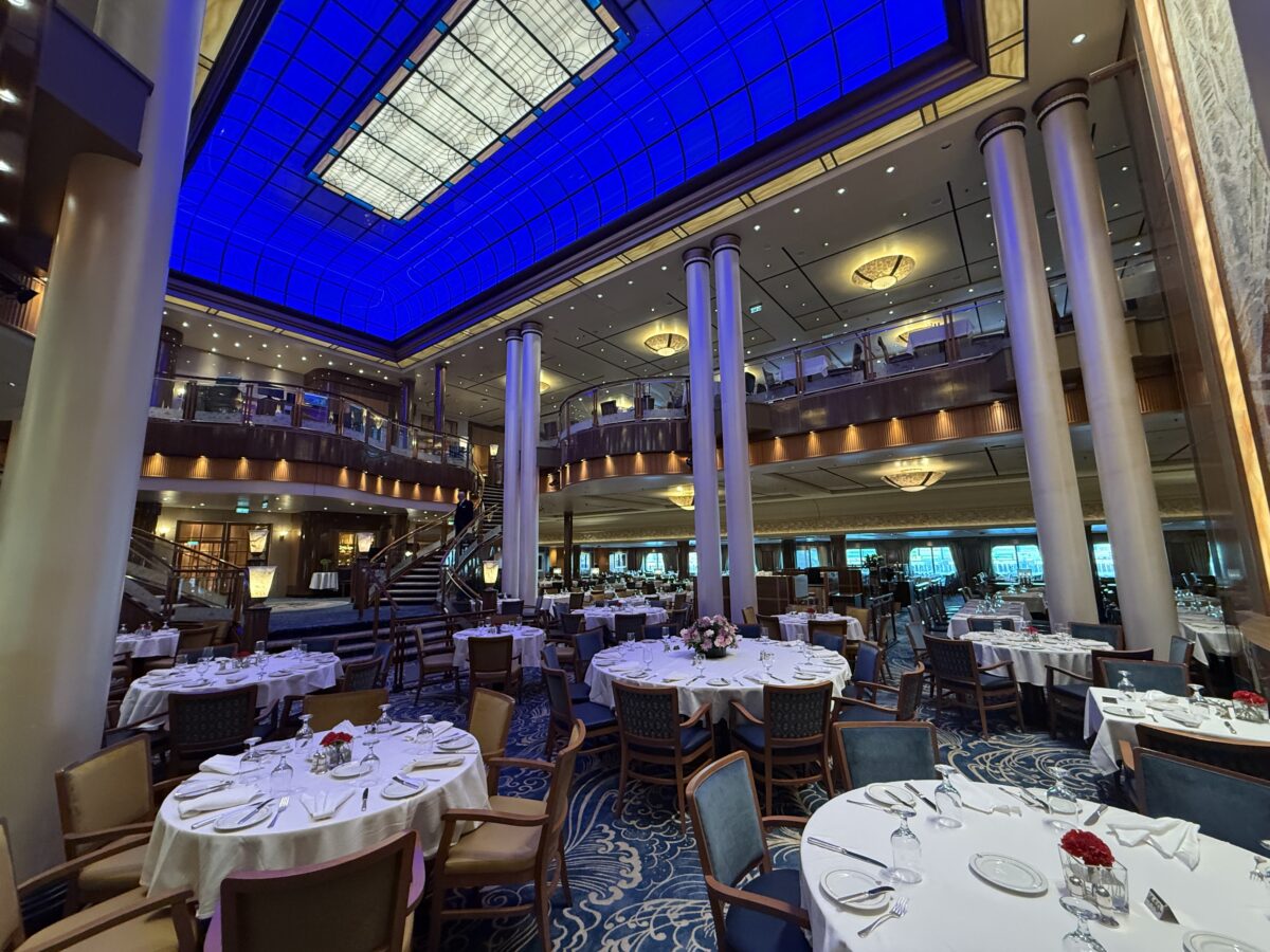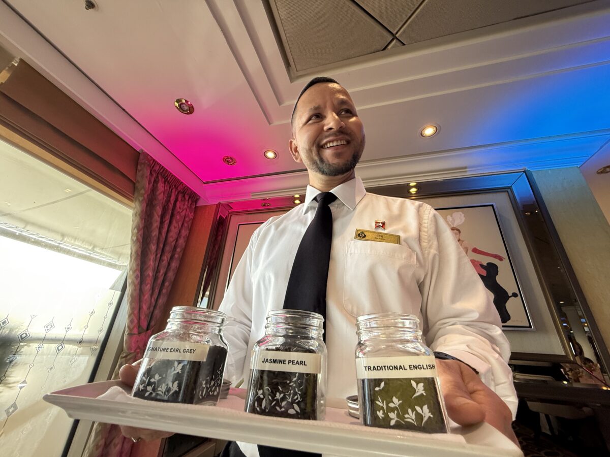 The fine linens, bone china and silver spoons laid out for the tea built our anticipation to sample the Queen’s finest. “I’ve tasted enough cucumber sandwiches,” another reporter joked as I used my silver tongs to retrieve the last one. In truth, the culinary offerings were perhaps a little pedestrian for such a grand ship, but the trappings were exquisite.