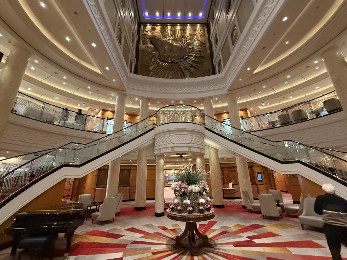 Grand lobby of the Queen Mary 2 Credit: Photo by Chris Nichols