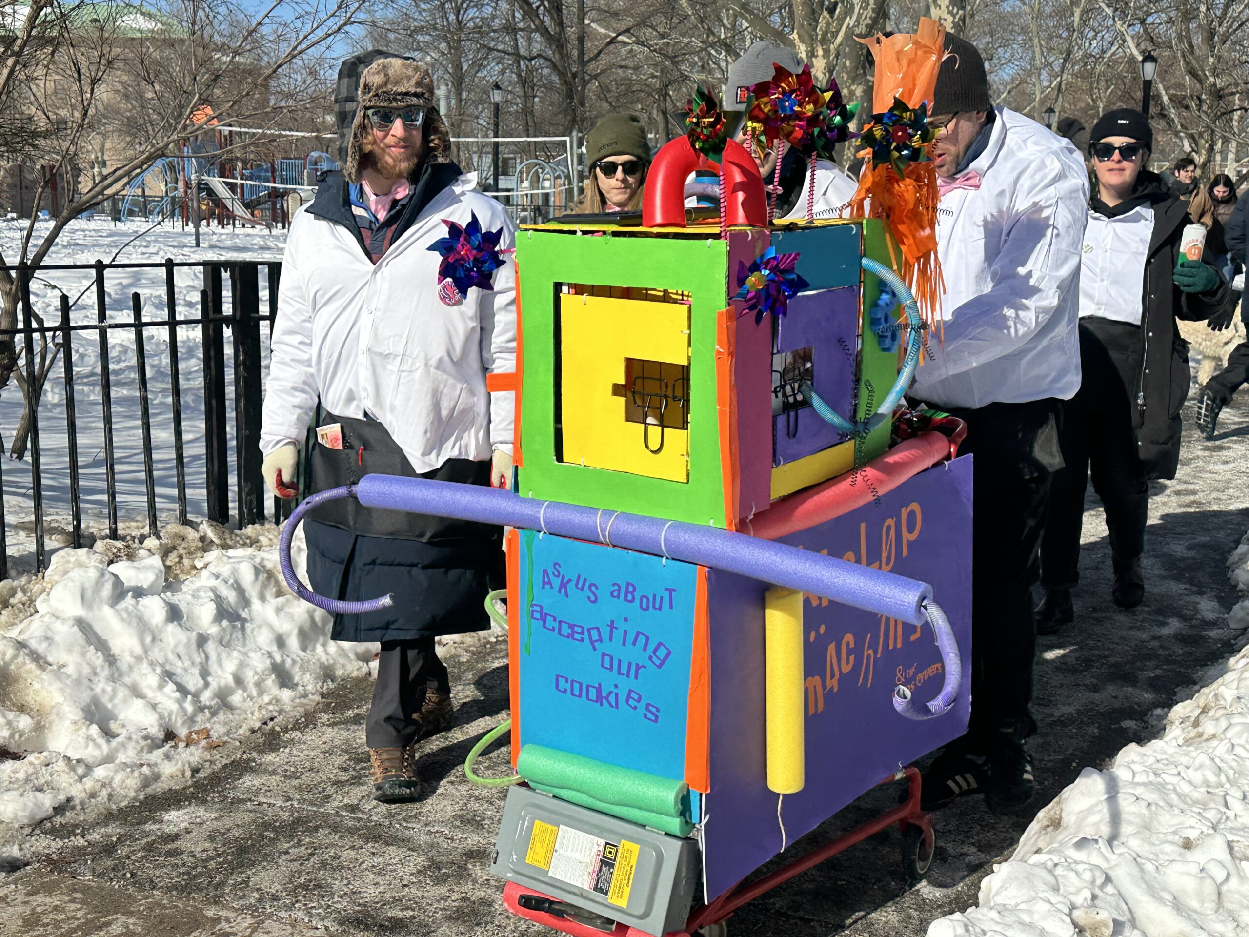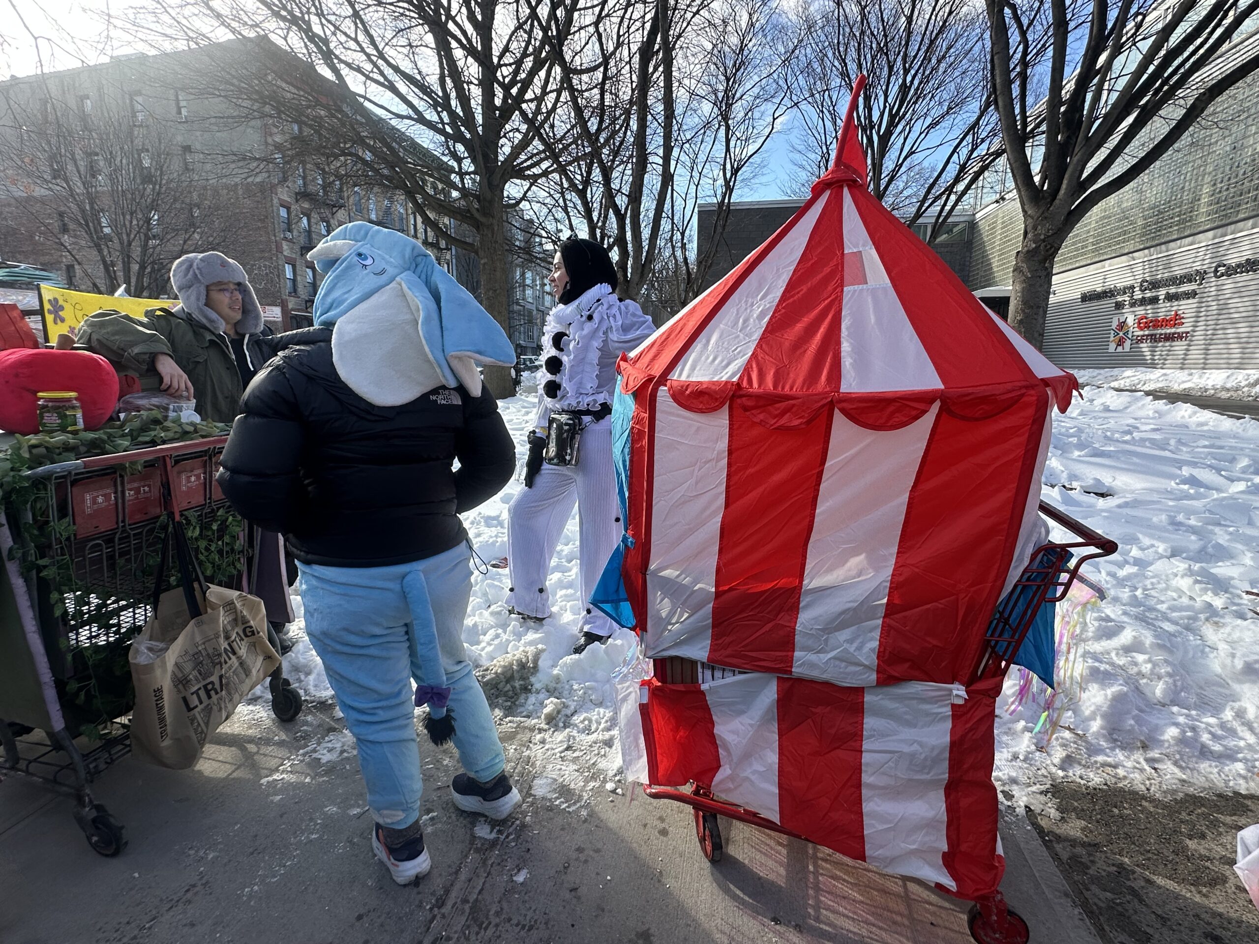 Despite the raging cold and snow on the ground, over 30 teams in full costumes with decorated and on-theme carts participated in Idiotarod. The name of the race is a play on Alaska’s famous dog sled race––Iditarod. Perhaps it may seem idiotic to be out all day in the cold of NYC January, but all involved had a wonderful time. Many passersby on the street joined in the revelry and even more took pictures.