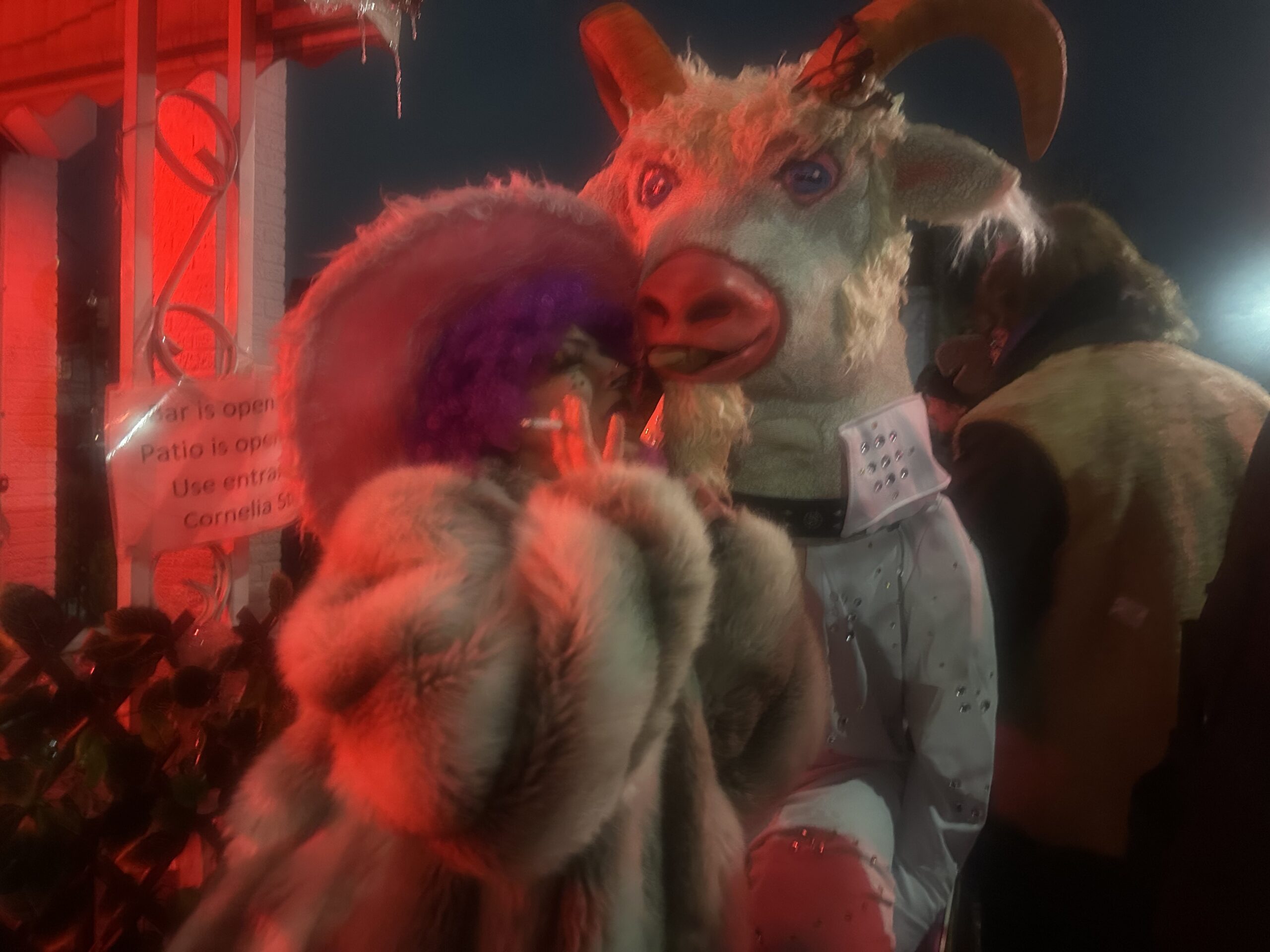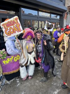 Mandy Kitana, 37, from the Bronx, participated in Idiotarod for her first time, on Kostume Kult’s Team Party Goat. She said, “It was fantastic. We get to express ourselves in zero climate. Why else live? This is the epitome of our expression of free will. I wish I knew how treacherous it would be. That was part of the fun though. Hit and miss free will attraction! Going through the ice and snow was dangerous, but we still fought through it. It was a gamble. We still persevered because of our free will. Dress warm and be prepared for whatever free will throws in your face. I will absolutely come back next year. The elements challenge you to be chaotically creative. We choose to be out in 7 degree weather. I wouldn’t be here if the cyclone came but we chose our free will and we regret nothing. Why live a life that you’re just gonna regret when you can choose to just do it?”