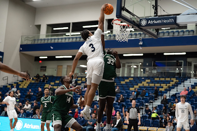 Queens guard Isaiah Henry (3) throws down a dunk in the Royals’ win over Jacksonville Thursday night.  (Photo:  Queens Athletics)