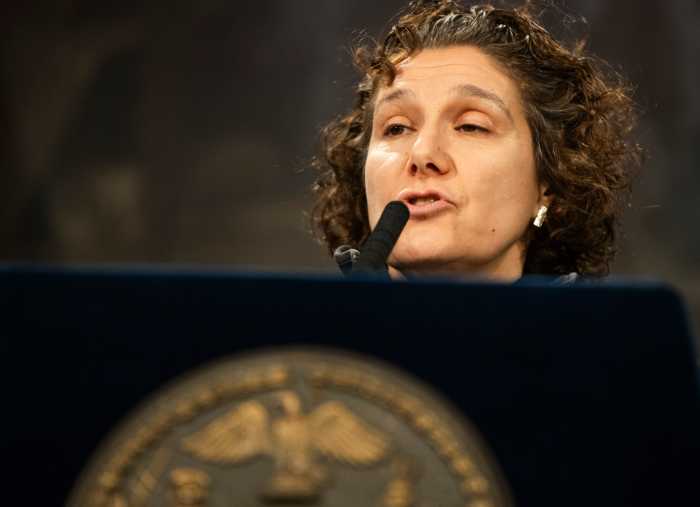 Molly Wasow Park, commissioner of the Department of Social Services, enters the city’s Office of Emergency Management in Brooklyn for a weather briefing on Friday, Feb. 6, as the city responds to extreme cold conditions.Photo by Lloyd Mitchell Park address reporters on the city’s Code Blue response on January 27,2026. Photo by Lloyd Mitchell