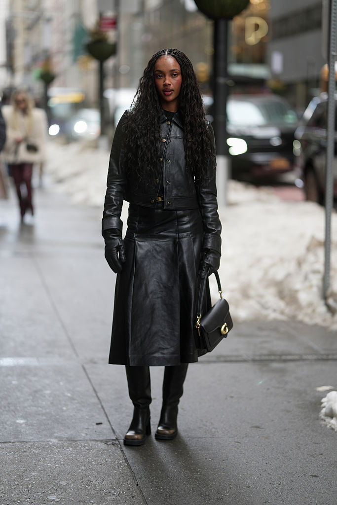 We love everything about this black leather look spotted on the streets on Feb. 11.