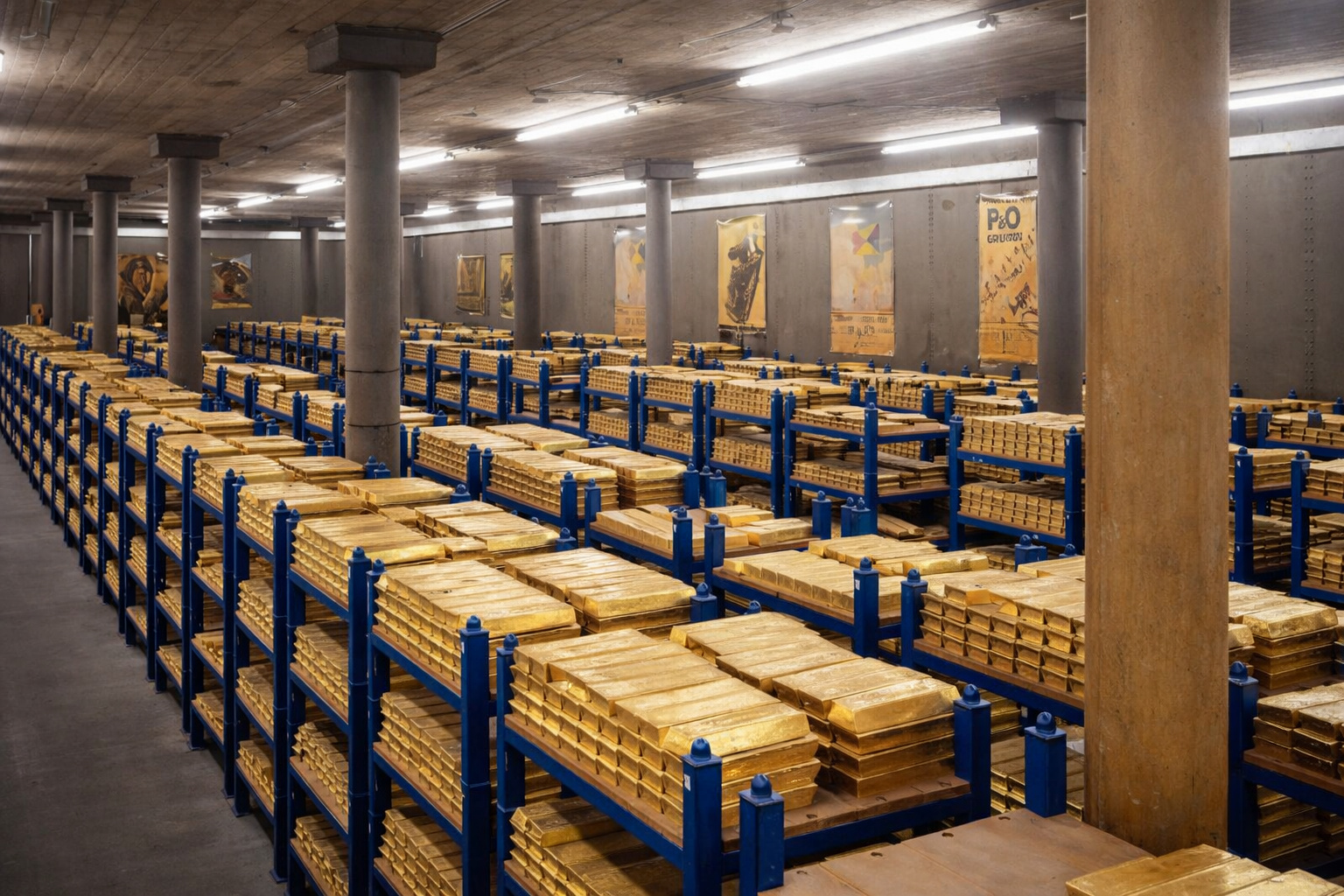 Each gold bar weighs approximately 12,4 kg (Good Delivery standard), and all are registered, cataloged, and audited periodically.