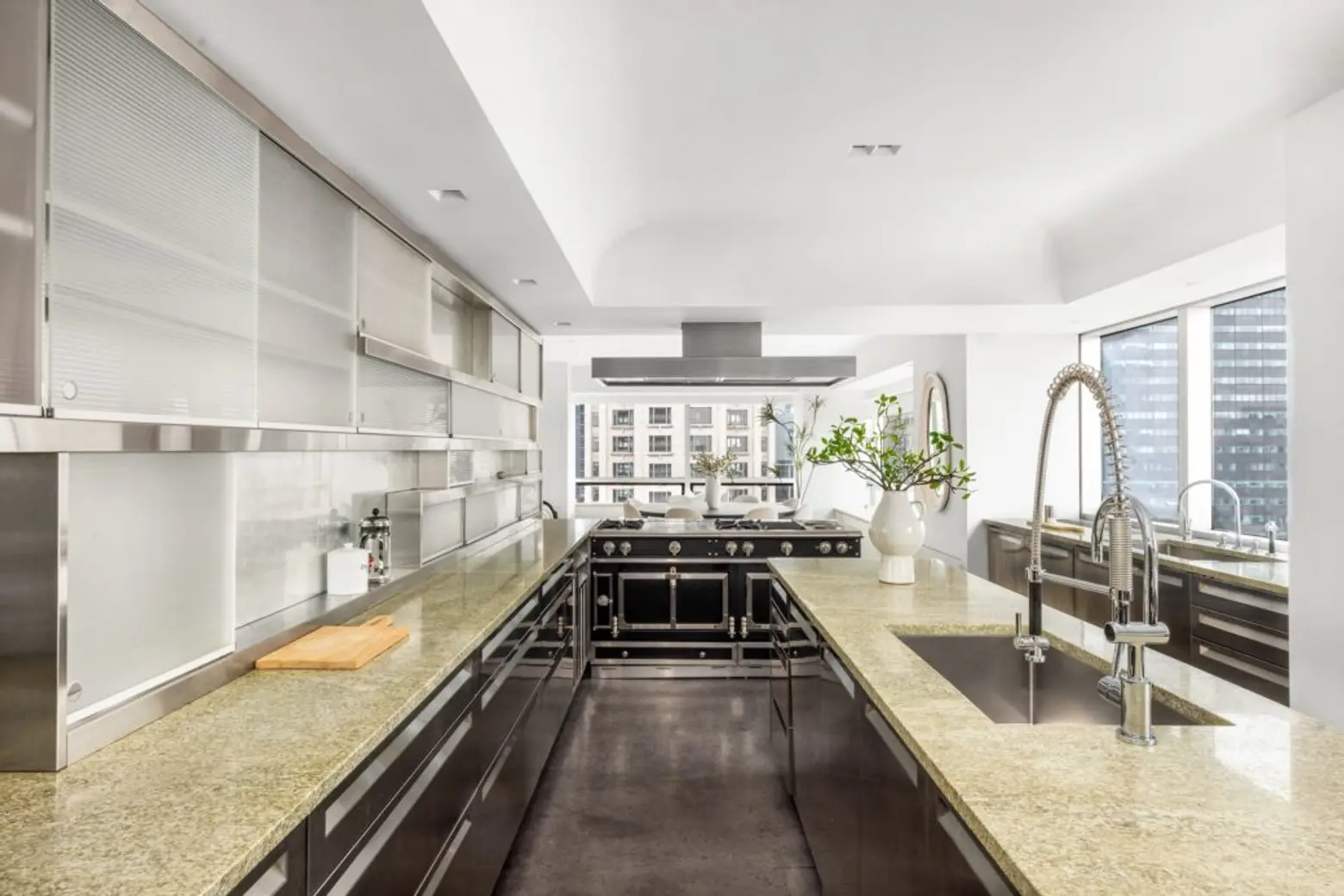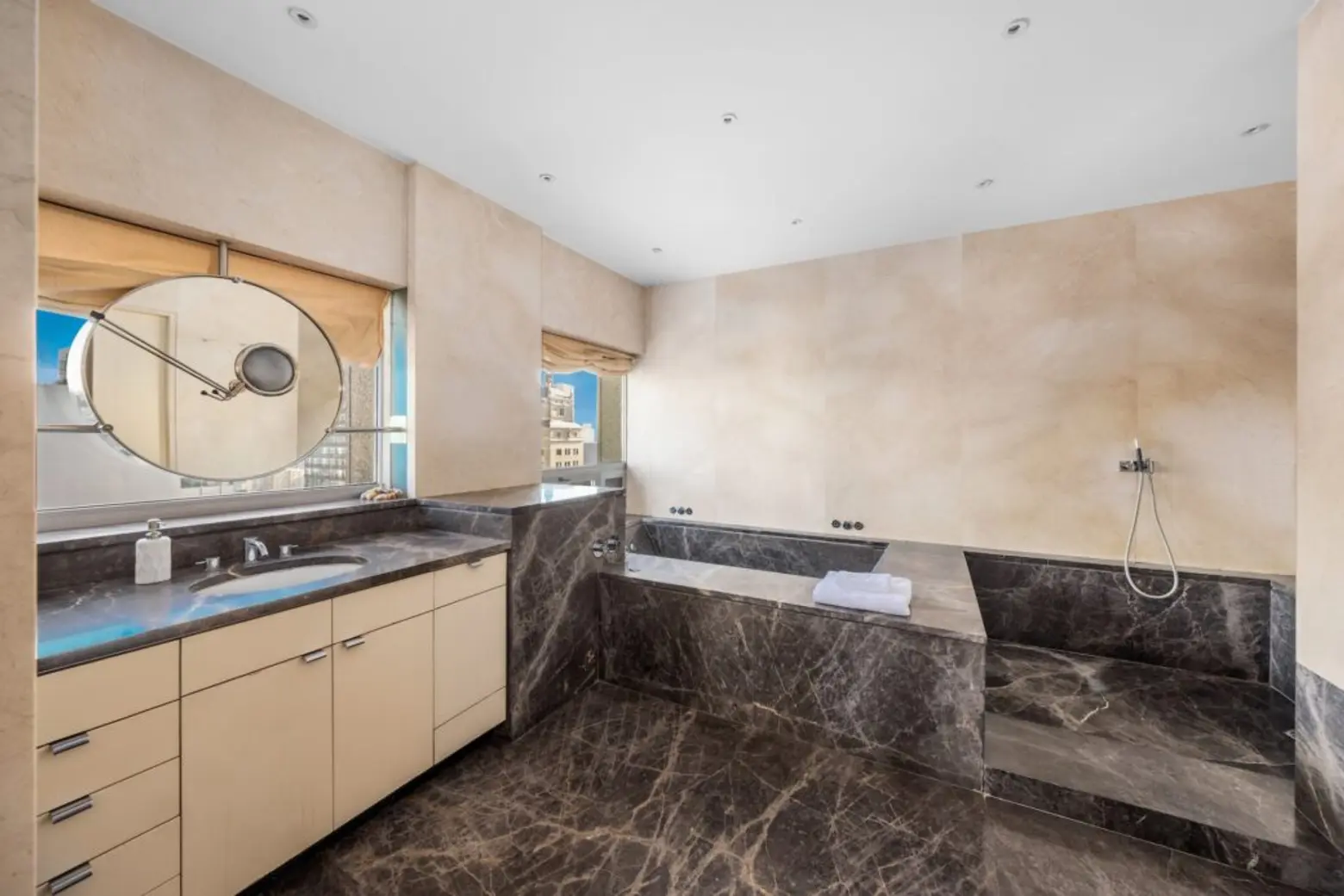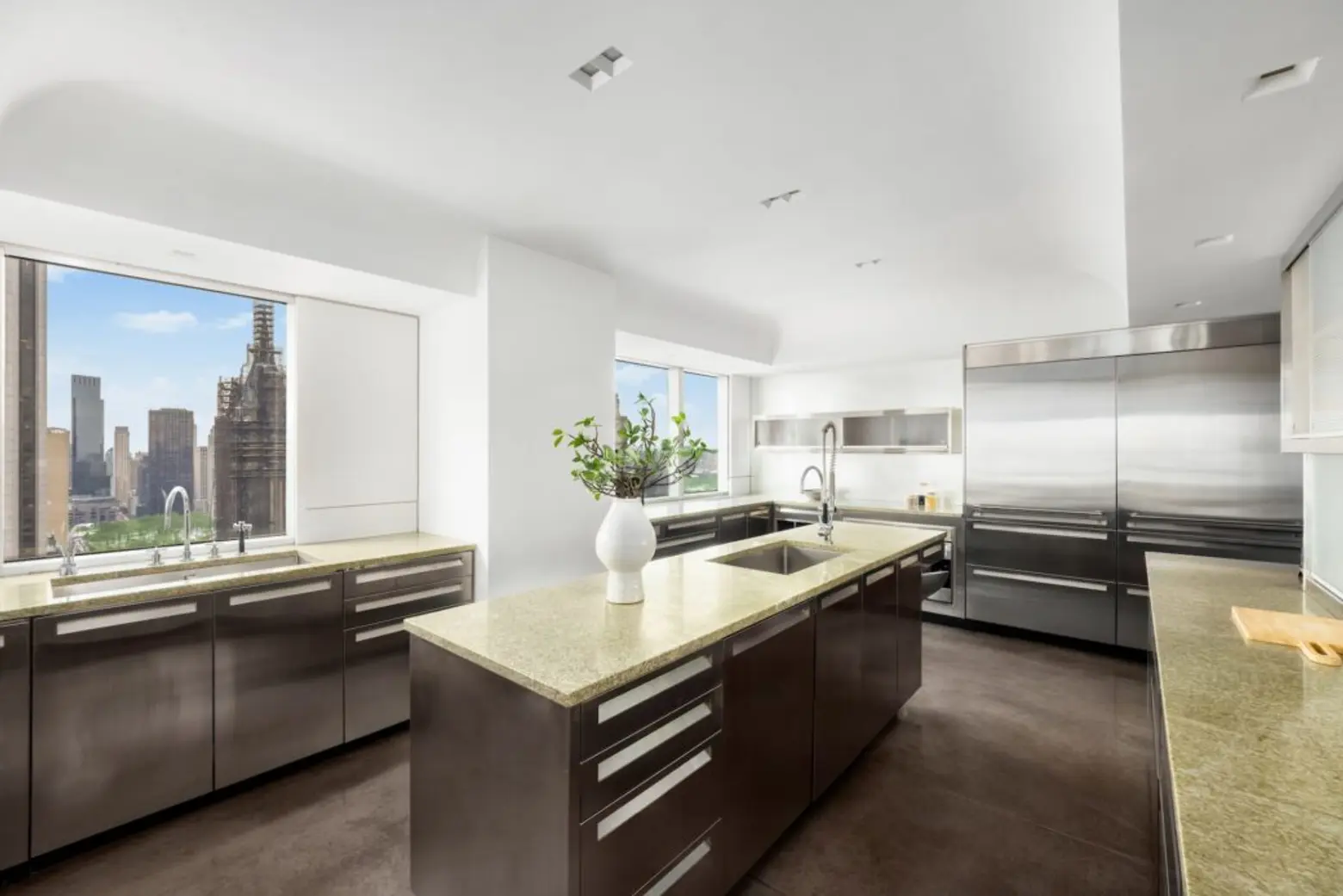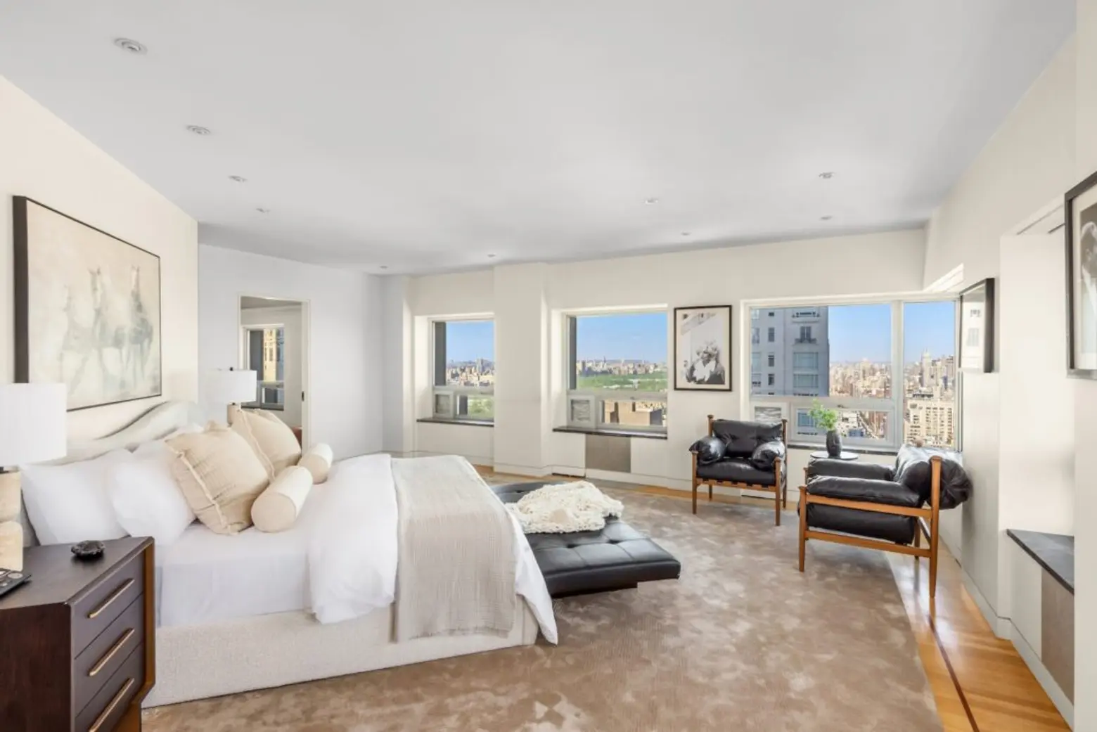 Upstairs, the entire 40th floor holds the home’s private bedroom suites. The primary suite gets a separate wing outfitted with two dressing rooms.