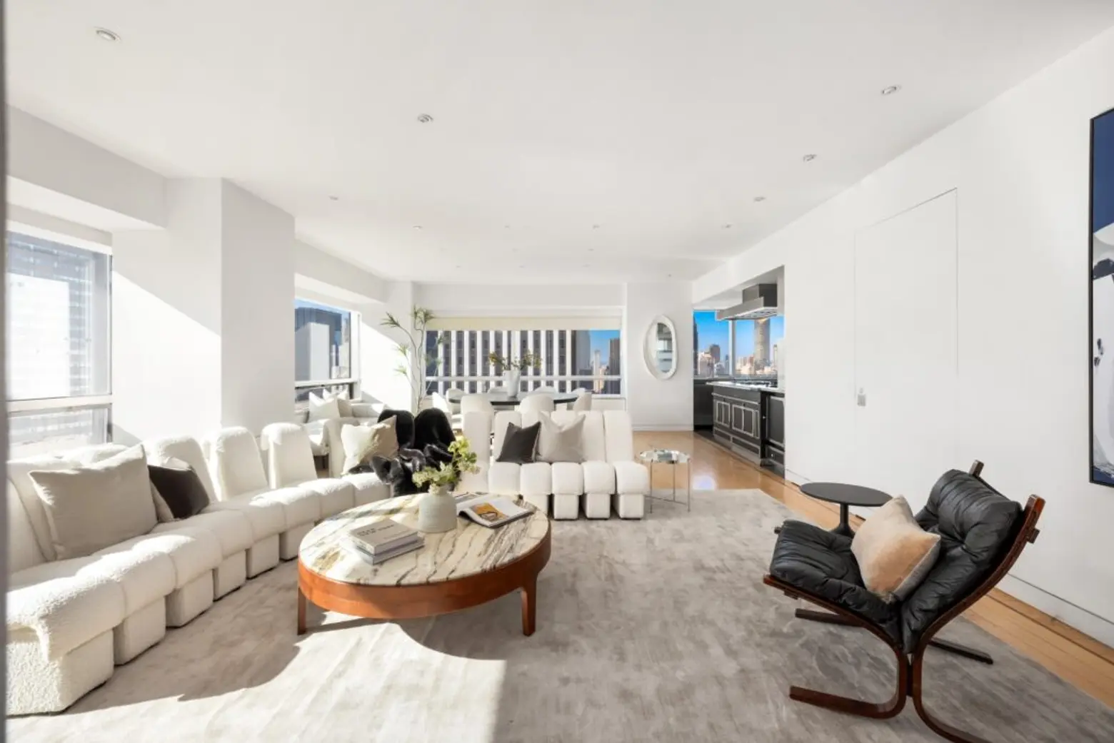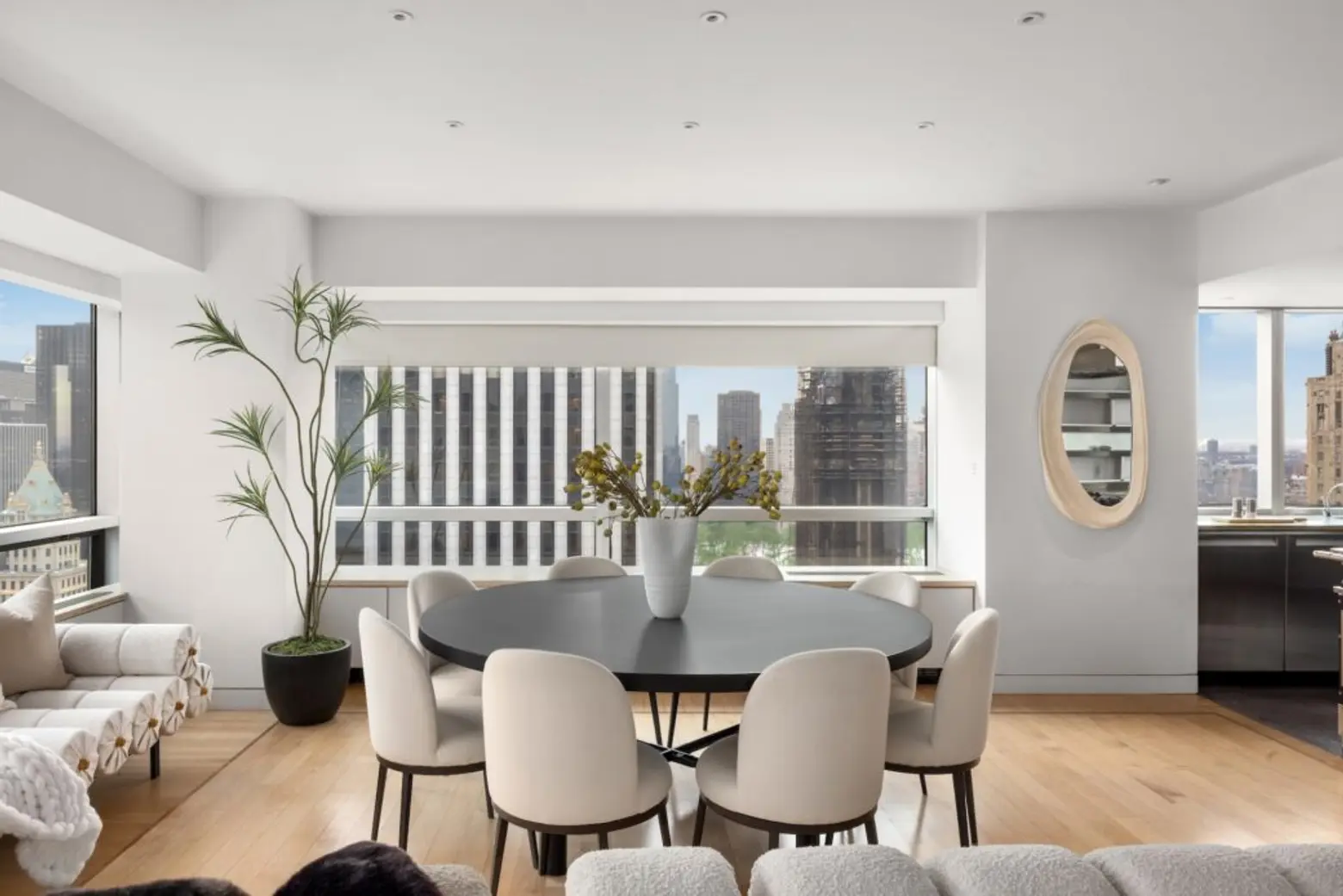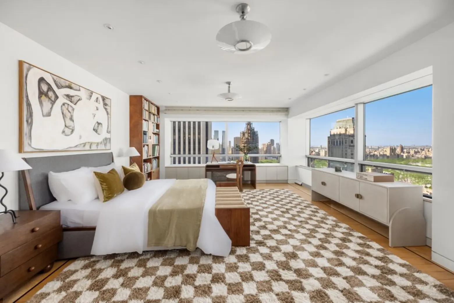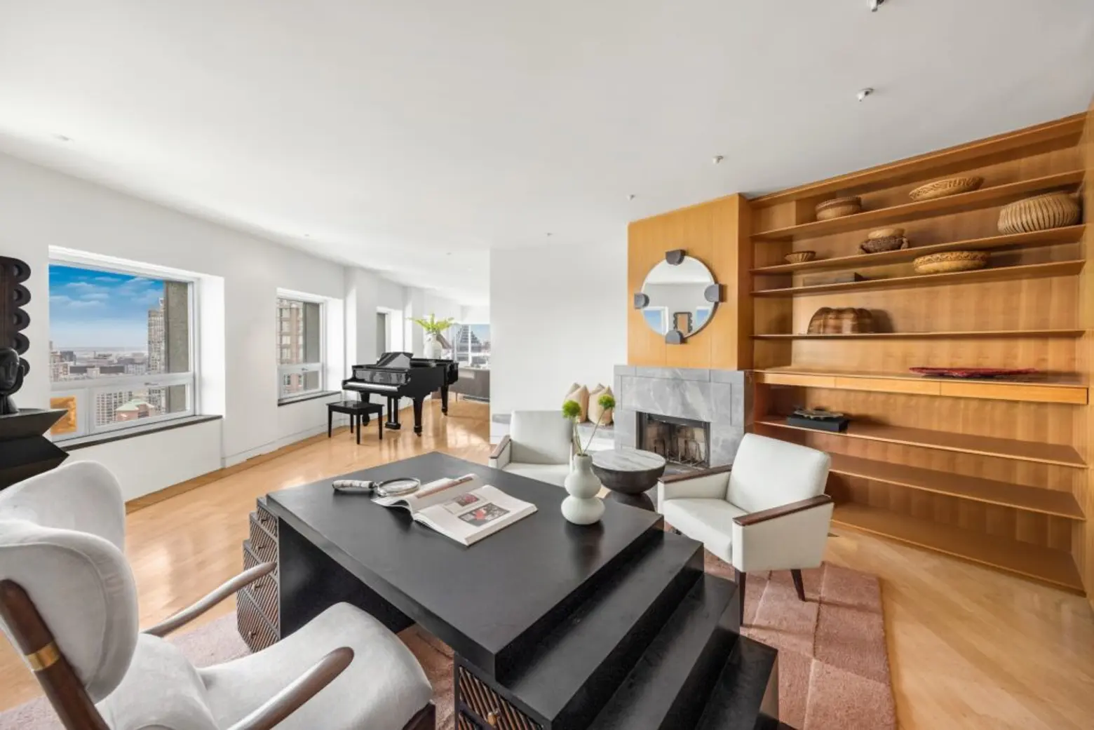 If you’re thinking a townhouse is too small, this dazzling duplex high above Manhattan’s east side at 500 Park Avenue, asking $15 million, might do. With over 9,000 square feet of living space, it’s easy to get lost among the rooms that span two floors of this Midtown condo with four exposures, panoramic views, and a massive terrace. Currently owned by architect Wendy Evans Joseph, who has designed projects for noted museums and cultural institutions, including the new Canarsie Library, NYC’s first public mass timber building, the home’s interiors reflect a level of design sophistication not found in the average Manhattan penthouse.