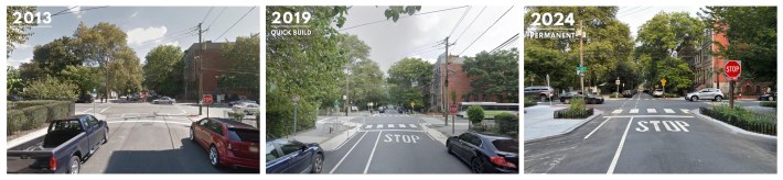 Key to Patel’s approach was “tactical urbanism,” a practice of quickly deploying low-cost protected bike lanes or corner curb extensions, before building them out with hard barriers and planters.