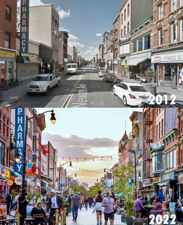 The city also closed off a section of Newark Avenue and created a car-free pedestrian mall.