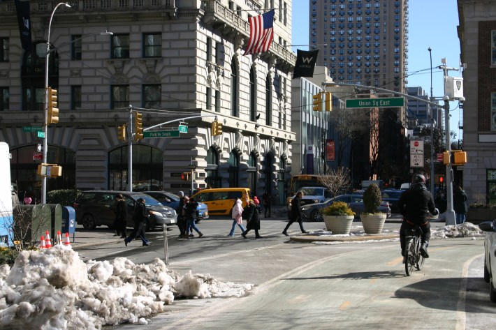 E. 17th Street, seen from the protected bike lane on Union Square North.Photo: Max White