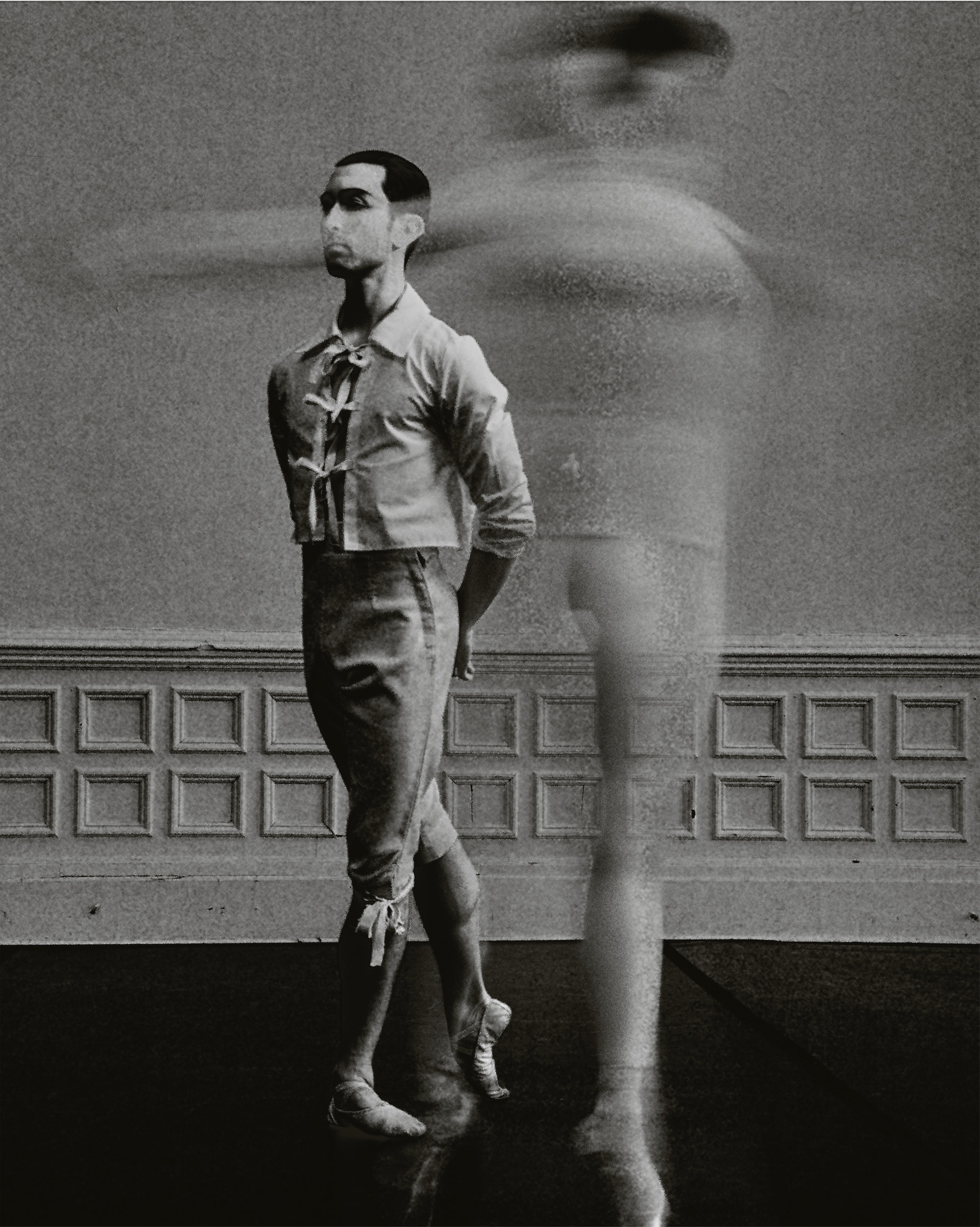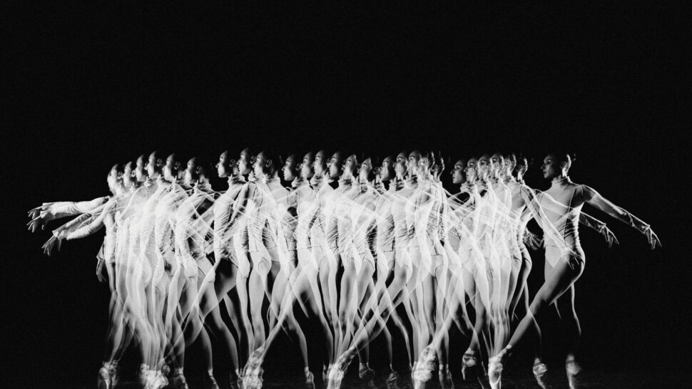 The reference to Mili is particularly appropriate, not only because many of his best-known photographs featured athletes and dancers—including NYCB dancers and portraits of George Balanchine himself—in motion, but also because his approach was firmly situated in experimentation. After studying electrical engineering at MIT in the 1920s, Mili was employed by the Westinghouse Lamp Company to conduct lighting research, all the while testing out new photographic techniques as the technology advanced, on the side. He used a series of flashes for his stroboscopic images, made most famous in LIFE magazine, with photos “taken in 1/100,000th of a second.” As he told LIFE, “Time could truly be made to standstill. Texture could be retained despite sudden violent move-ment.” The same applies beautifully to Grevet’s work, with the addition of digital tools and an embrace of the imprecise, “blurred” moments providing additional such texture to his creations.