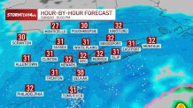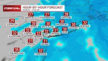 A mix of rain and snow starts Sunday morning. Temperatures drop late Sunday afternoon and snow starts to stick Sunday evening. Snowfall rates up to 3 inches an hour and increasing winds will greatly reduce visibility and likely reach blizzard criteria (especially in Suffolk County) into Monday morning.