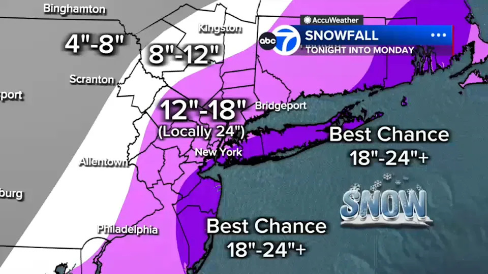 When all is said and done, much of the Tri-State, including New York City, could accumulate 12-18 inches or more, with even high totals possible in coastal areas like Long Island and the Jersey Shore.