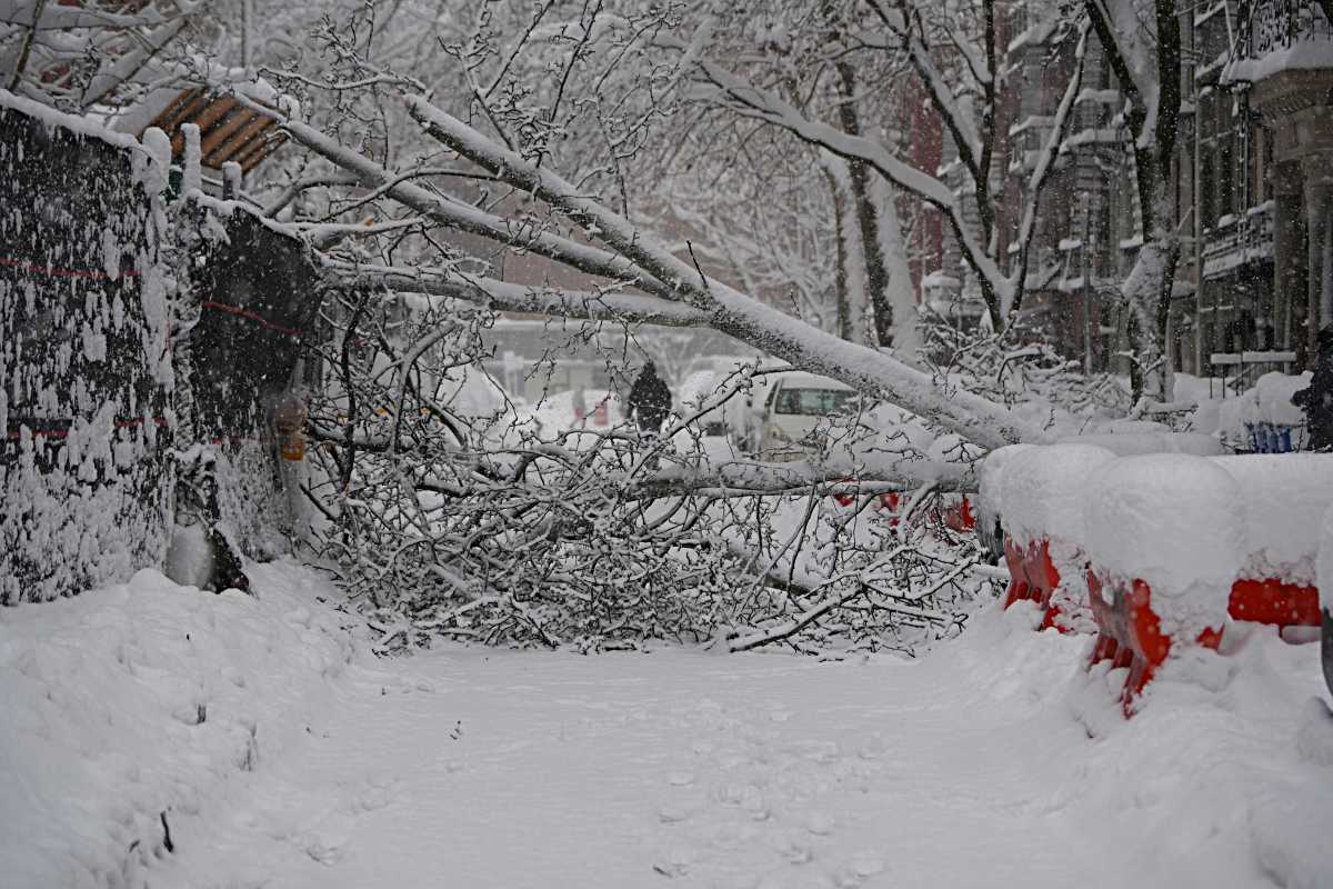 This was just one of many incidents reported during the blizzard, as heavy winds sent trees crashing into roadways from the Upper East Side to Gramercy and the East Village.