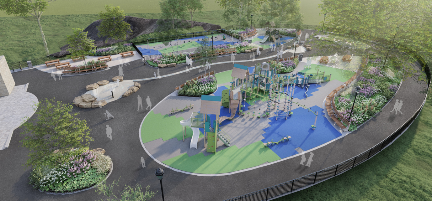 Rendering of the planned renovation for River Run Playground. Images courtesy of the New York City Department of Parks and Recreation and Abel Bainnson Butz, LLP