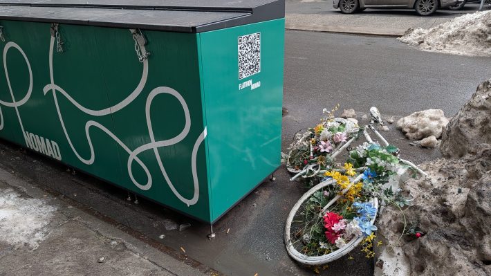 “Following recent winter weather, the ghost bike’s appearance had deteriorated and it was mistakenly treated as part of that routine clearing,” the spokesperson said, acknowledging it was trashed — though the spokesperson offered the euphemism “through standard removal procedures.”
