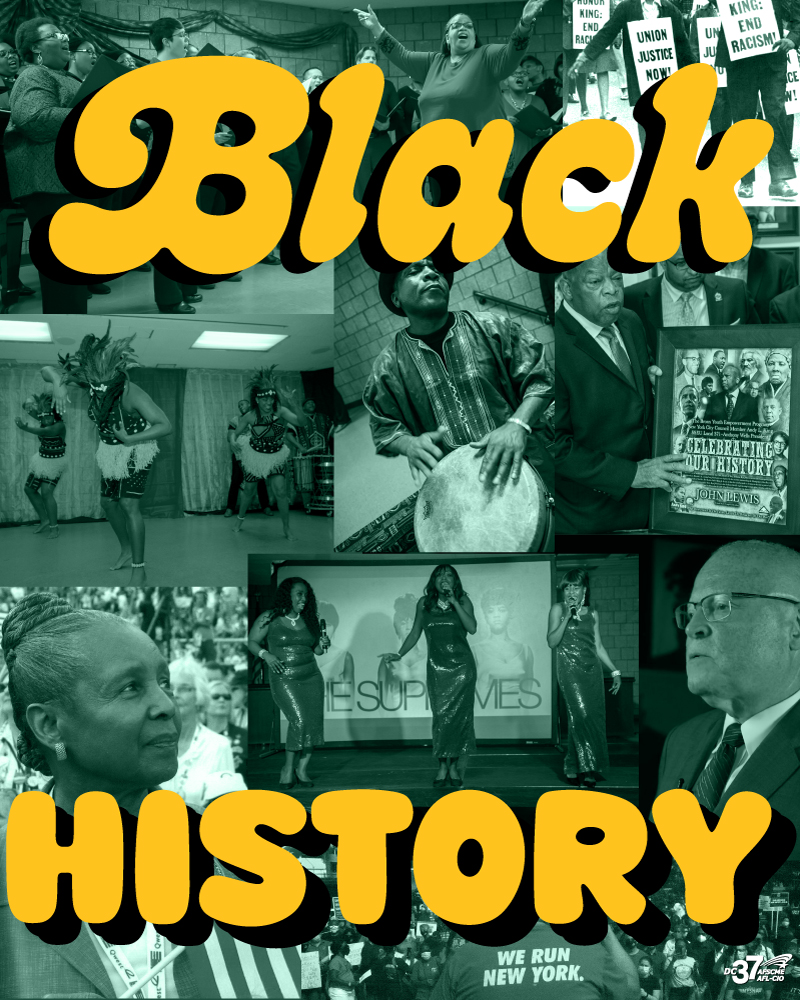 Today, we welcome Black History Month! We’re thinking about the accomplishments, contributions, and culture of Black Americans all month. We’re studying the strategies, courage, and inspired genius of folks we’ve had the pleasure to share space with historically. At DC 37, Black History Month is a time of reflection on the Black union trailblazers who courageously supported the civil rights movement (a union issue!) and paved the way for us to continue the fight for justice and equality. Their daring to be powerful and impactful means we have a beacon to aspire to!
