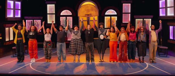 When the doors opened for the audience, the actors were already setting the scene, and all remained on stage throughout the entire show. Through detailed warm lighting that mimics a summer evening and the textured set design of a lived-in basketball court, viewers were immediately transported into the setting of a group of five teens — Abel, Clara, Lola, Mia and Piri — playing basketball, dancing and teasing each other.