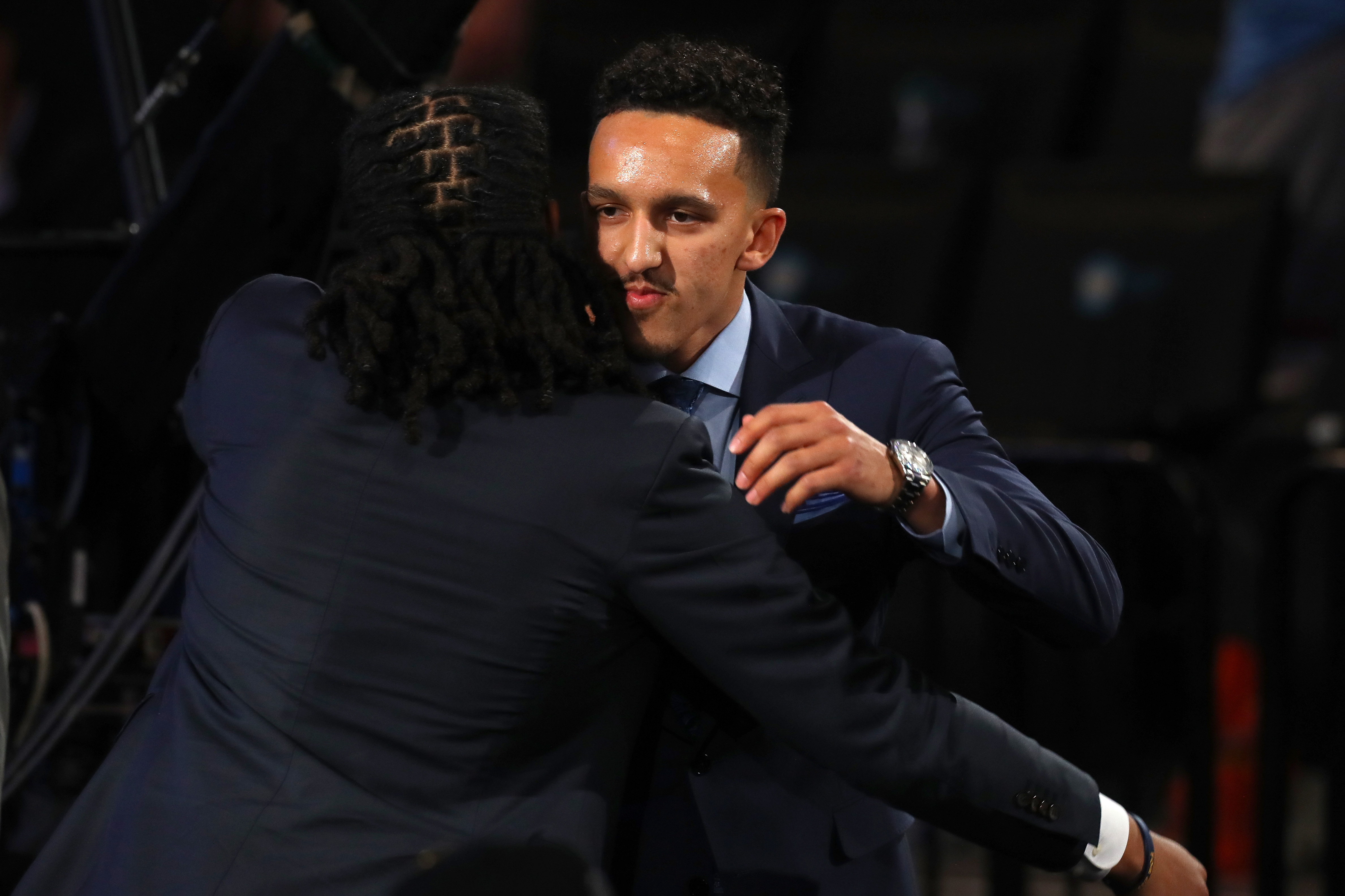 GettyNEW YORK, NY – JUNE 21: Landry Shamet reacts in the crowd after being drafted 26th overall by the Philadelphia 76ers during the 2018 NBA Draft at the Barclays Center on June 21, 2018 in the Brooklyn borough of New York City. (Photo by Mike Stobe/Getty Images)