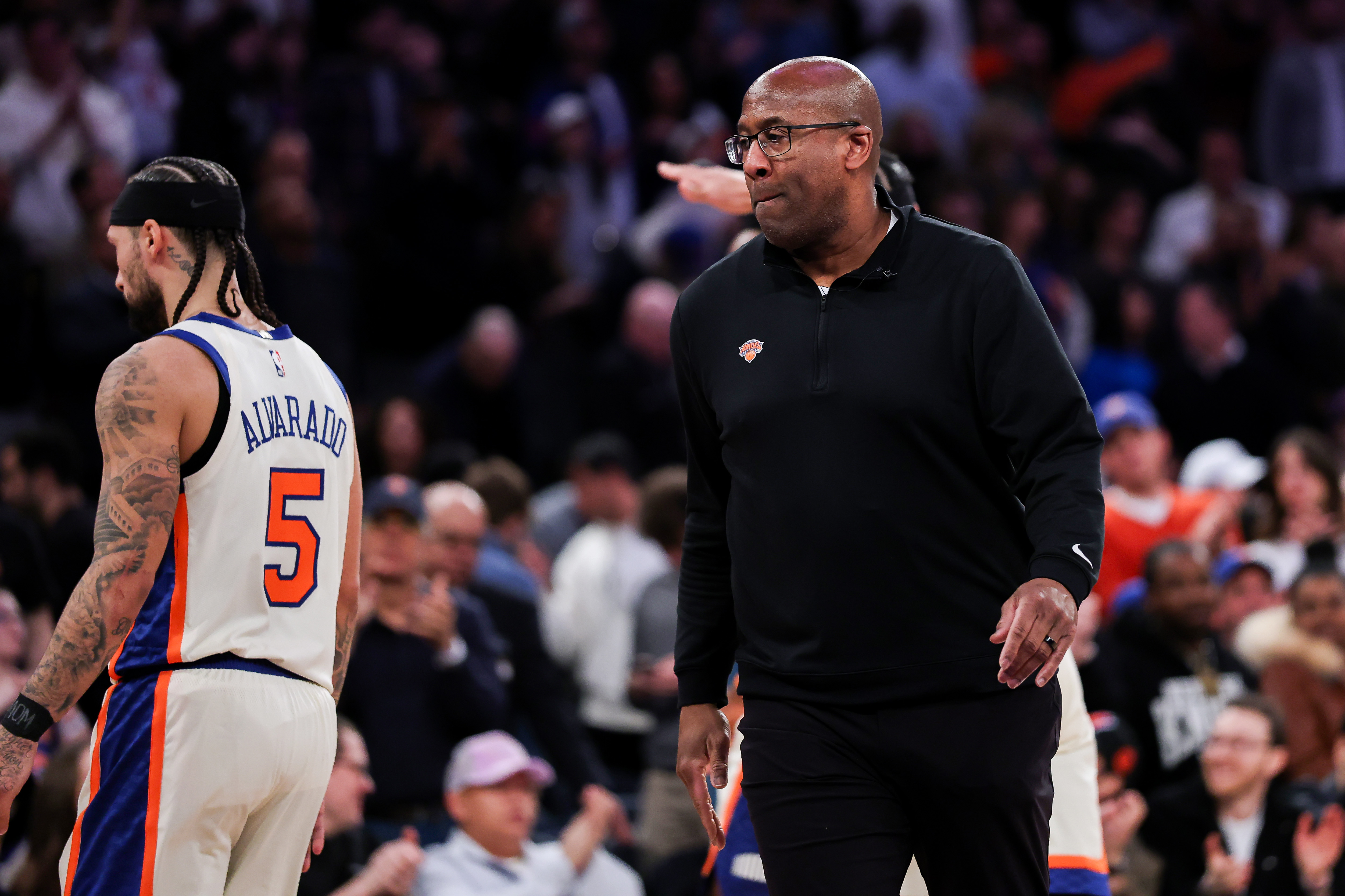 GettyNEW YORK, NEW YORK – MARCH 01: Head coach Mike Brown of the New York Knicks reacts during the third quarter of the game against the San Antonio Spurs at Madison Square Garden on March 01, 2026 in New York City. (Photo by Dustin Satloff/Getty Images)