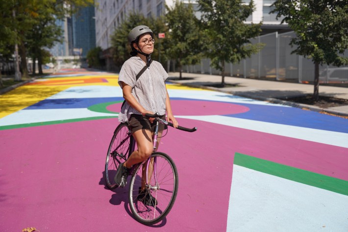 Assembly Member Claire Valdez rides a bike.