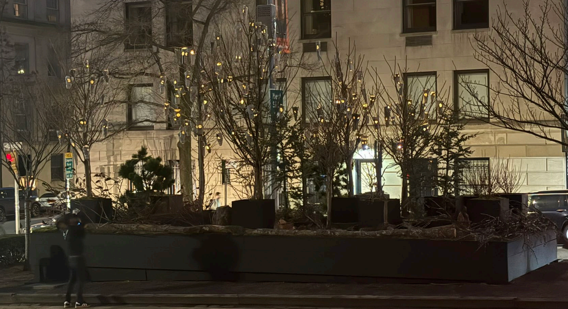 “They are Urban Fireflies, lighting up the night,” the artist wrote in an artist’s statement. “They sway with breezes and move with the wind, like jazz riffs that create a rhythm of their own. Inhabiting a Scared Grove, seasonally bare in early spring, then sheltered in a leafy dome as summer ripens, Talisman will continue to change during their residency on Park Avenue Mall.”