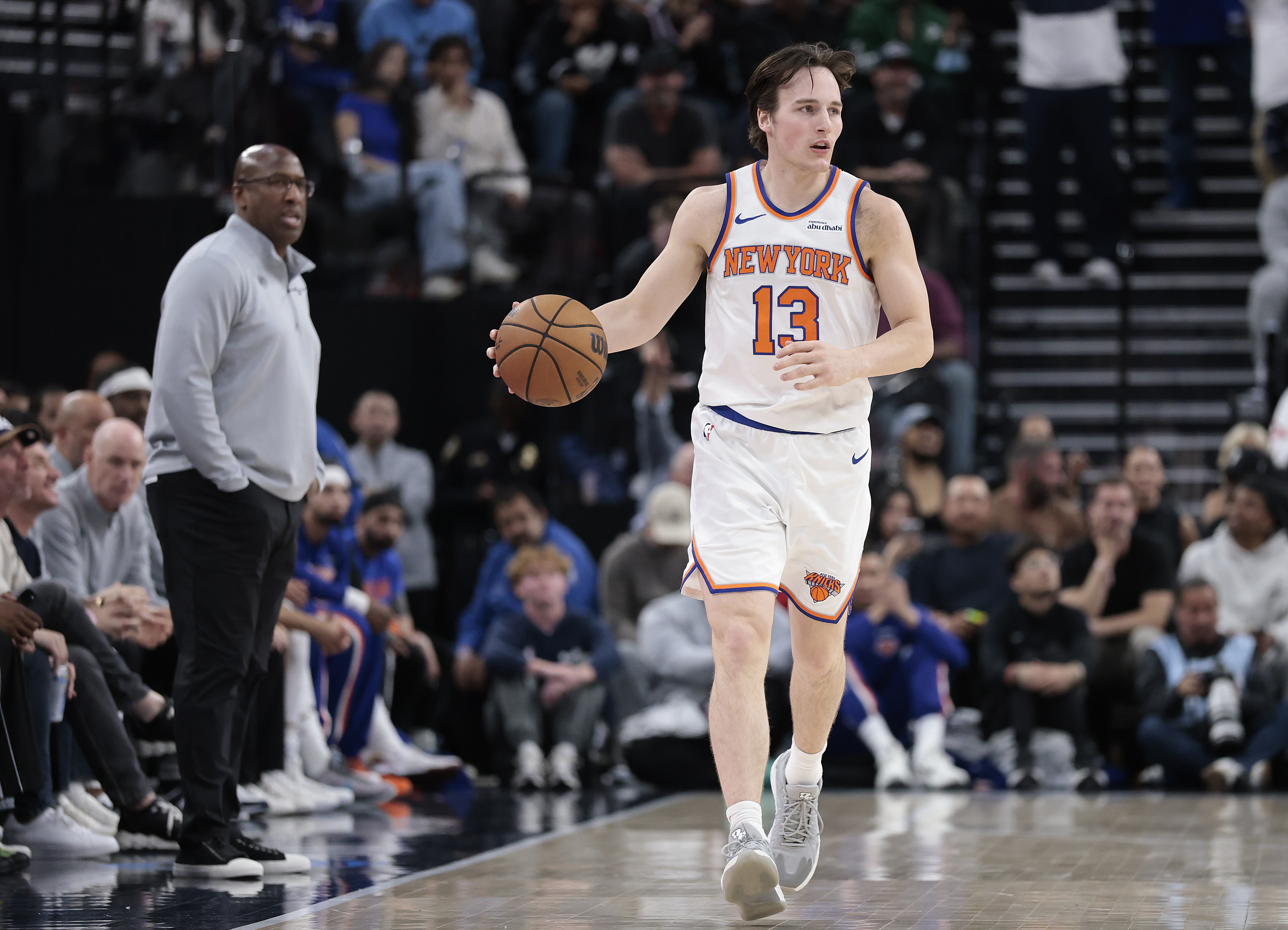 GettyINGLEWOOD, CALIFORNIA – MARCH 09: Tyler Kolek #13 of the New York Knicks controls the ball against the LA Clippers in the second half at Intuit Dome on March 09, 2026 in Inglewood, California. (Photo by Ronald Martinez/Getty Images)