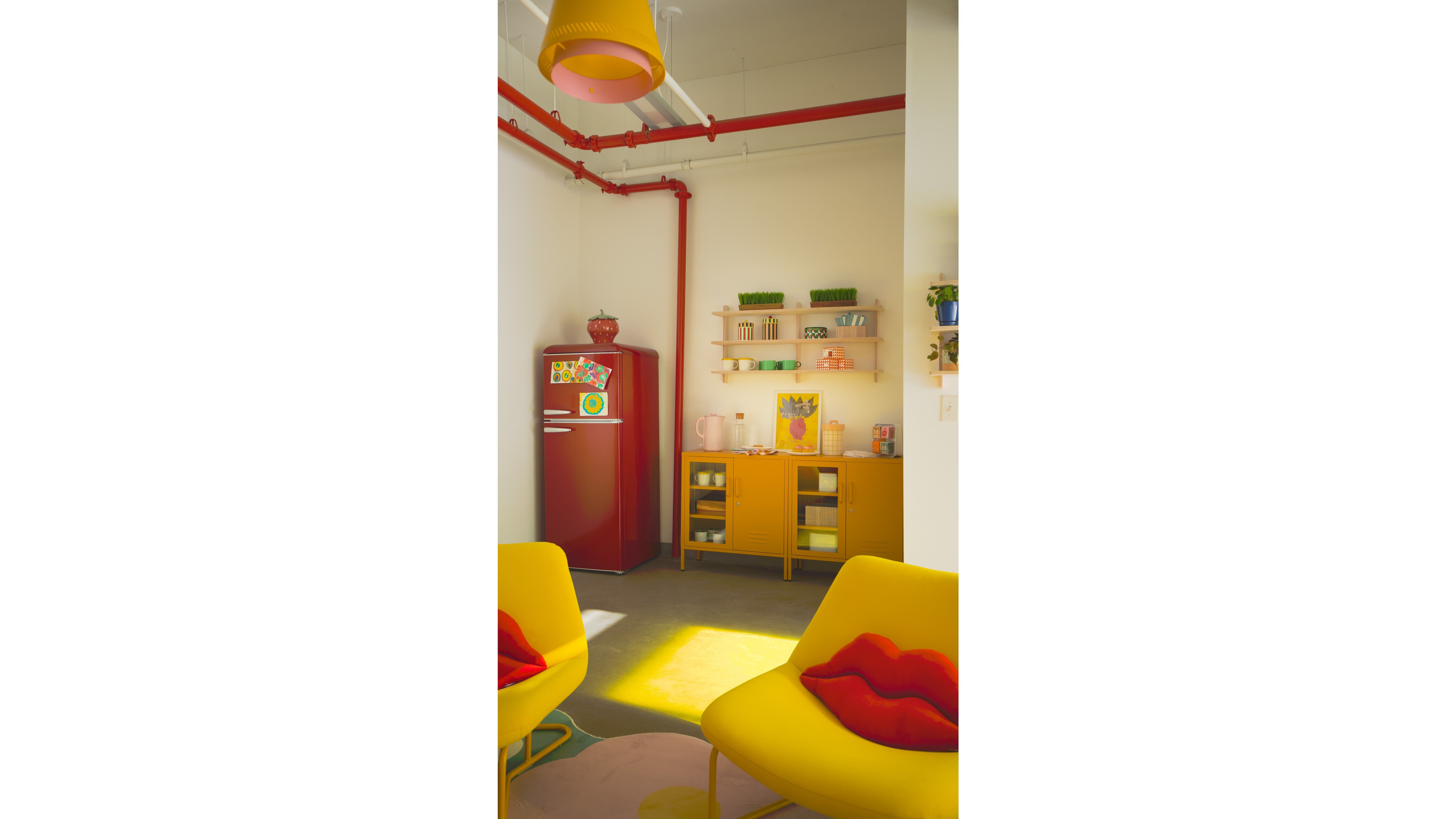 Apartment Therapy’s branded content team, Homemade Studios, selected furniture and decor with energizing colors to infuse the space with joy.