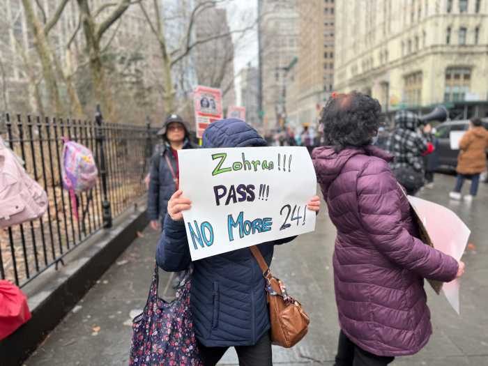 Protesters demanded Mamdani stop delaying the passage of the No More 24 Act and complete negotiations with the New York City Council to stop the suffering of home care workers.Photo by Renee DeLorenzo