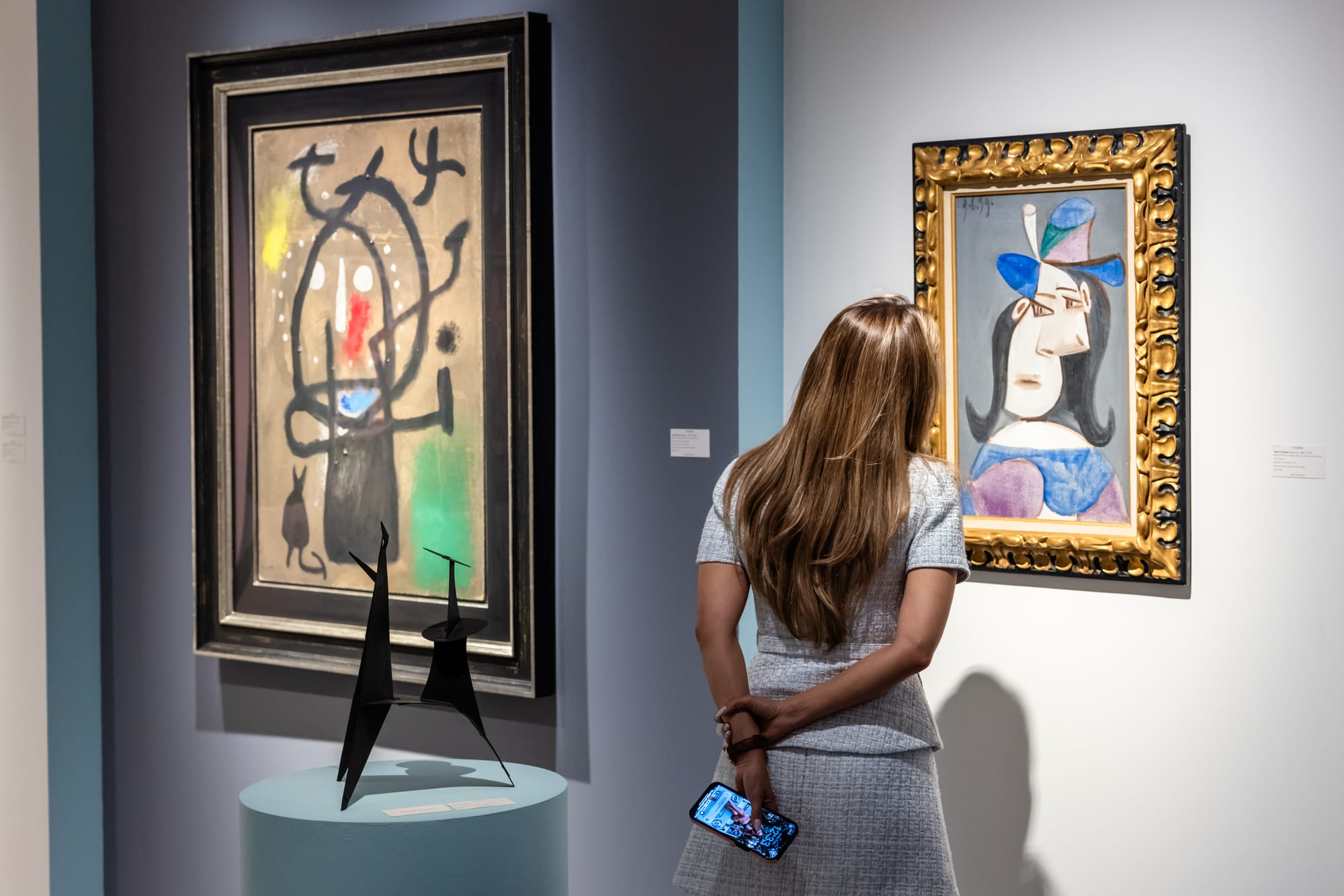 A fair visitor examines the display at the Di Donna Galleries booth during TEFAF New York 2025 (photo by Alex Staniloff, courtesy TEFAF)