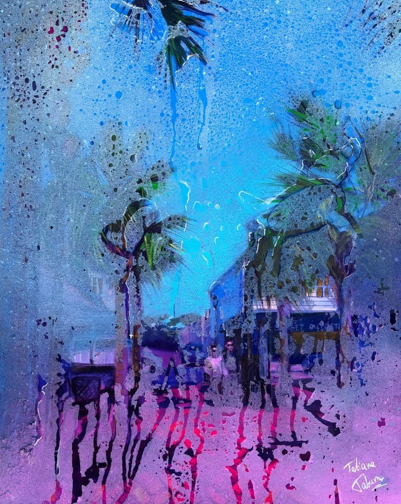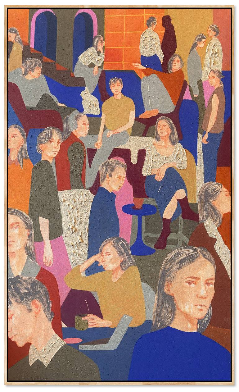 Kasia Frankowicz’s acrylic and oil pastel painting “Just Us” (2025) is on sale for $1,000 at the Affordable Art Fair. (image courtesy Affordable Art Fair)