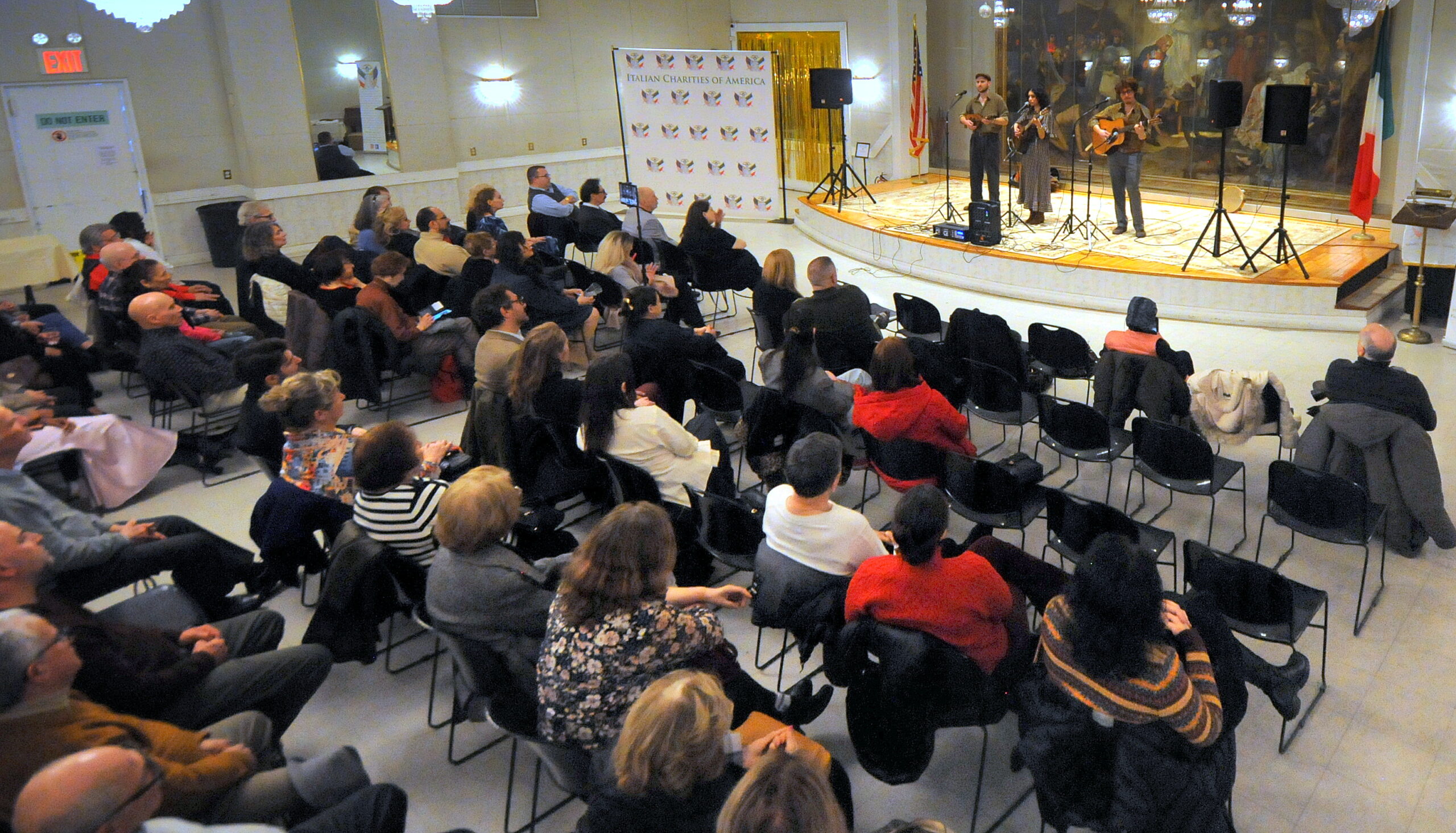 This past Saturday evening, March 14, the Italian Charities of America (ICA), located on Queens Boulevard in Elmhurst, sponsored for the community a free evening of entertainment from the singer Amanda Pascali and her back-up duo of musicians.  They played to a packed house of enthusiastic and appreciative listeners.
