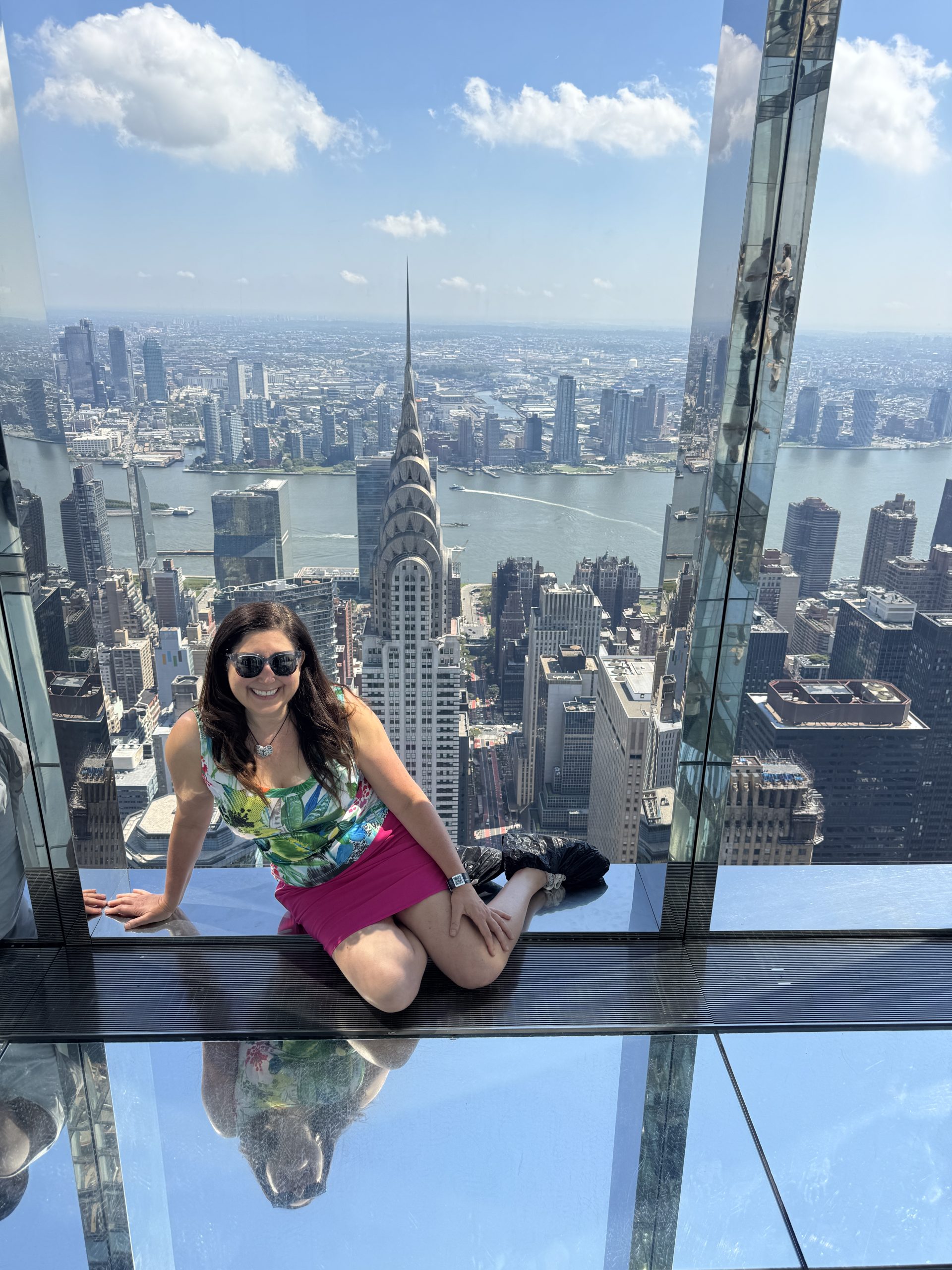 And then came the views — and the wow. Visiting SUMMIT One Vanderbilt was a true highlight. From the moment our guide welcomed us and led us past the line, the experience was pure magic. In just 42 seconds, the elevator soared to the 91st floor, where floor-to-ceiling mirrors reflected endless light and sky. We walked through art installations, clouds, and reflections that made the skyline itself part of the performance. With over 1,200 mirrors, four levels of immersive wonder, and views that stretch across the Chrysler Building, the East River, and the Hudson Yards, SUMMIT feels like floating inside a dream of New York. I loved that our premium tour included all the photos and even a drink on the terrace — a perfect moment to sip, gaze, and breathe in the brilliance of the city. (Pro tip: no short skirts or heels—trust me, you’ll understand when you see all that glass!) I can’t wait to return at night; I hear it’s a completely different kind of sparkle, complete with a café and even a churros bar!