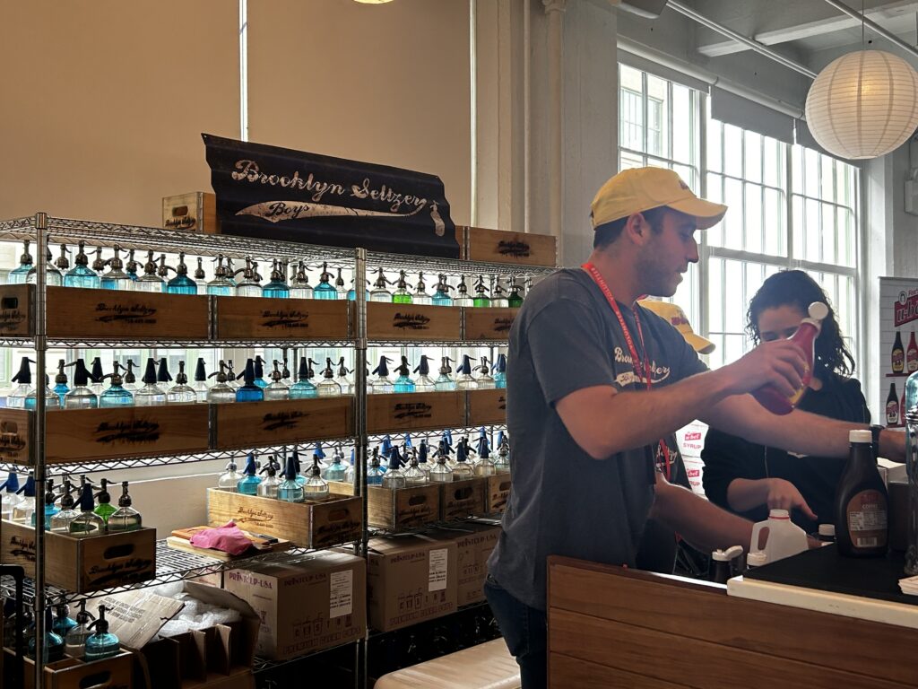 Both sessions included vendors with booths where you could create your own tote bag, counters that sold t-shirts advertising Brooklyn SeltzerFest 2026 or any other type of shirt to match your seltzer/egg cream fancy. There were tables to delight your tastebuds, comedians such as Kosha Dillz, Anna Roisman, Liz Glazer and Josh Cahn to keep you entertained and must-see/attend workshops (How to Make a Fox’s u-bet Famous Egg Cream Soda), vendors and exhibits.