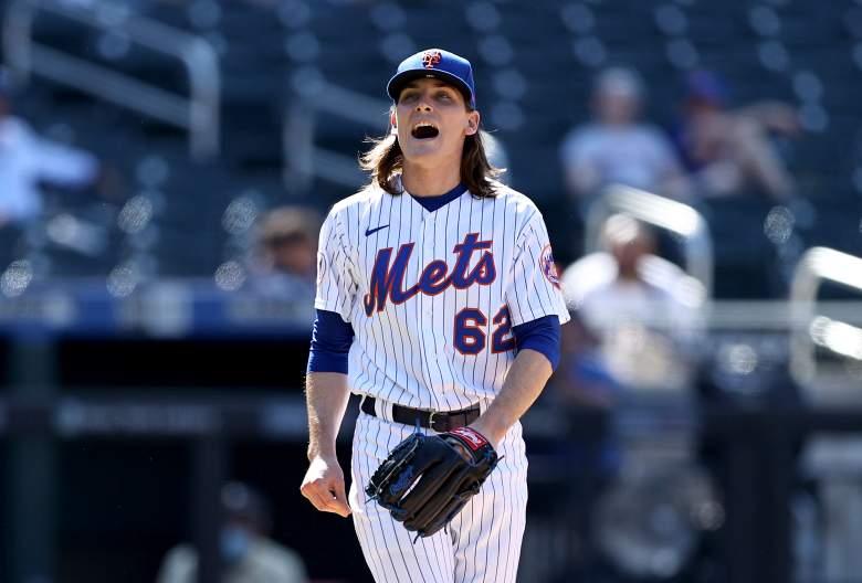 NEW YORK, NEW YORK – MAY 27: Drew Smith #62 of the New York Mets reacts after a pitch he delivered to Connor Joe of the Colorado Rockies in the fourth inning during game two of a double header at Citi Field on May 27, 2021 in the Flushing neighborhood of the Queens borough of New York City. (Photo by Elsa/Getty Images)