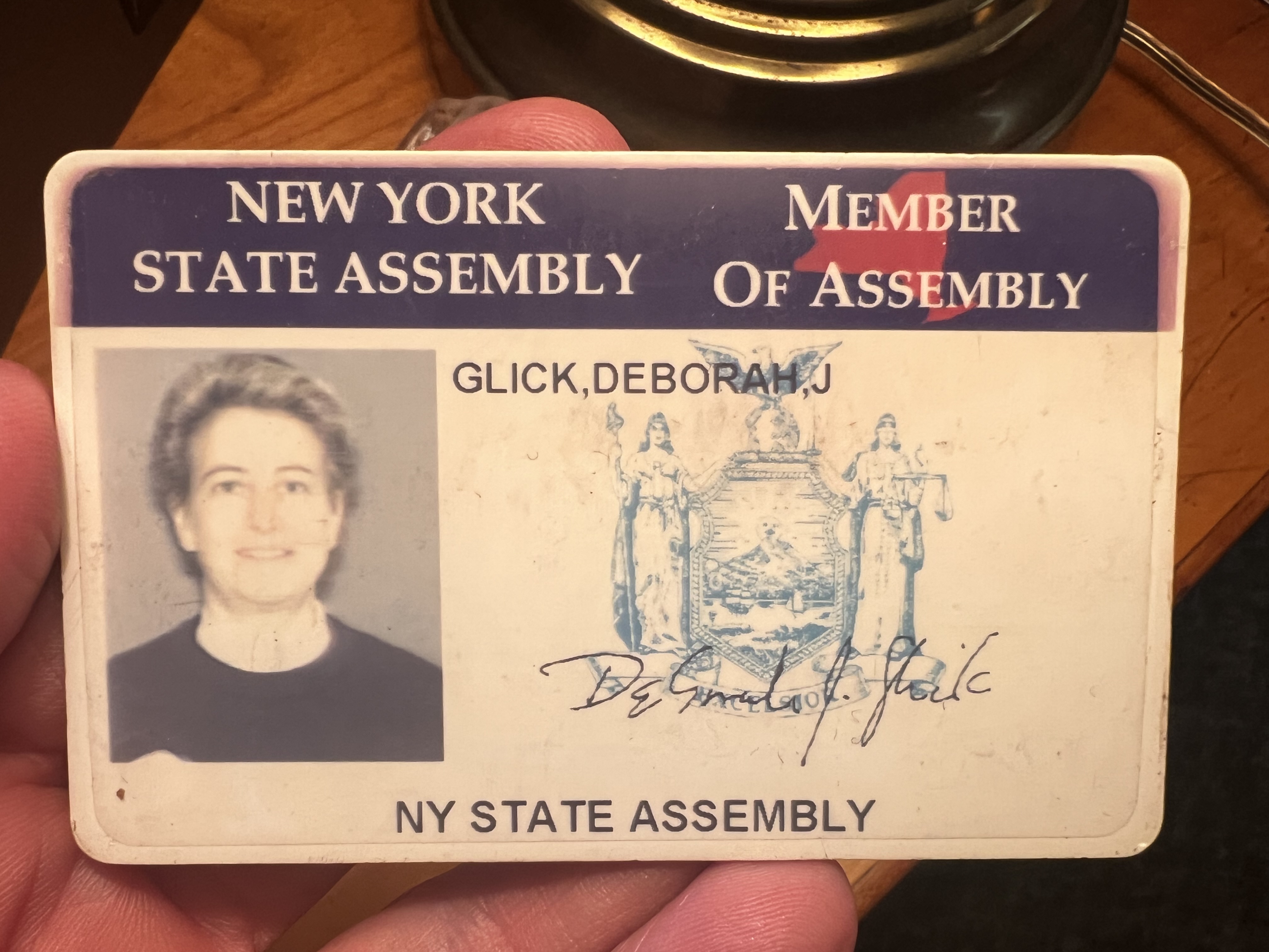 When City & State asked Deborah Glick if she had an older state ID photo, she said, “I wish I could help, but I think mine is new.” When she pulled out her badge and saw her photo from the ’90s, she shrugged and said, “Huh, guess it isn’t.” / Submitted