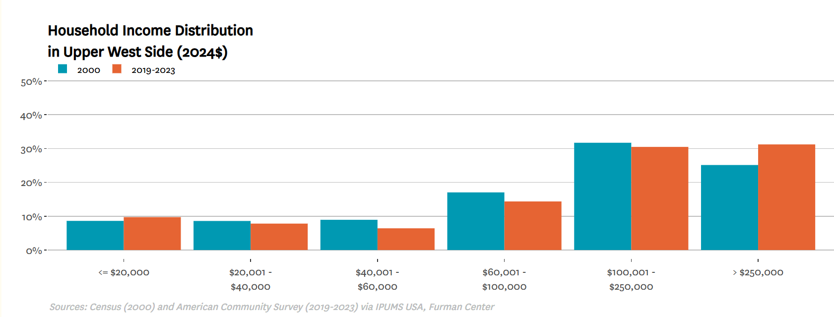 The Upper West Side has a median income that’s much higher than the rest of the city: