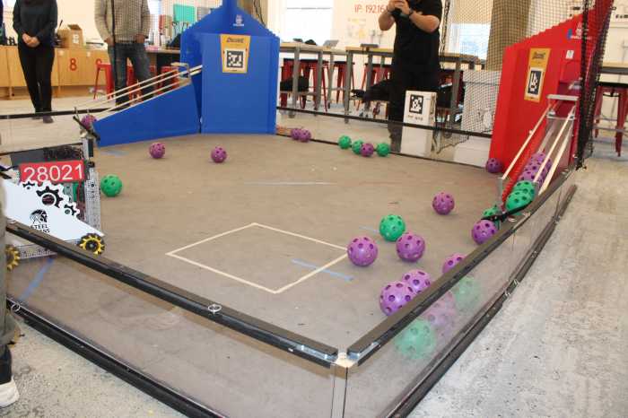 The student-created robot is put to use in this ball game. Photo courtesy Stevens’ office