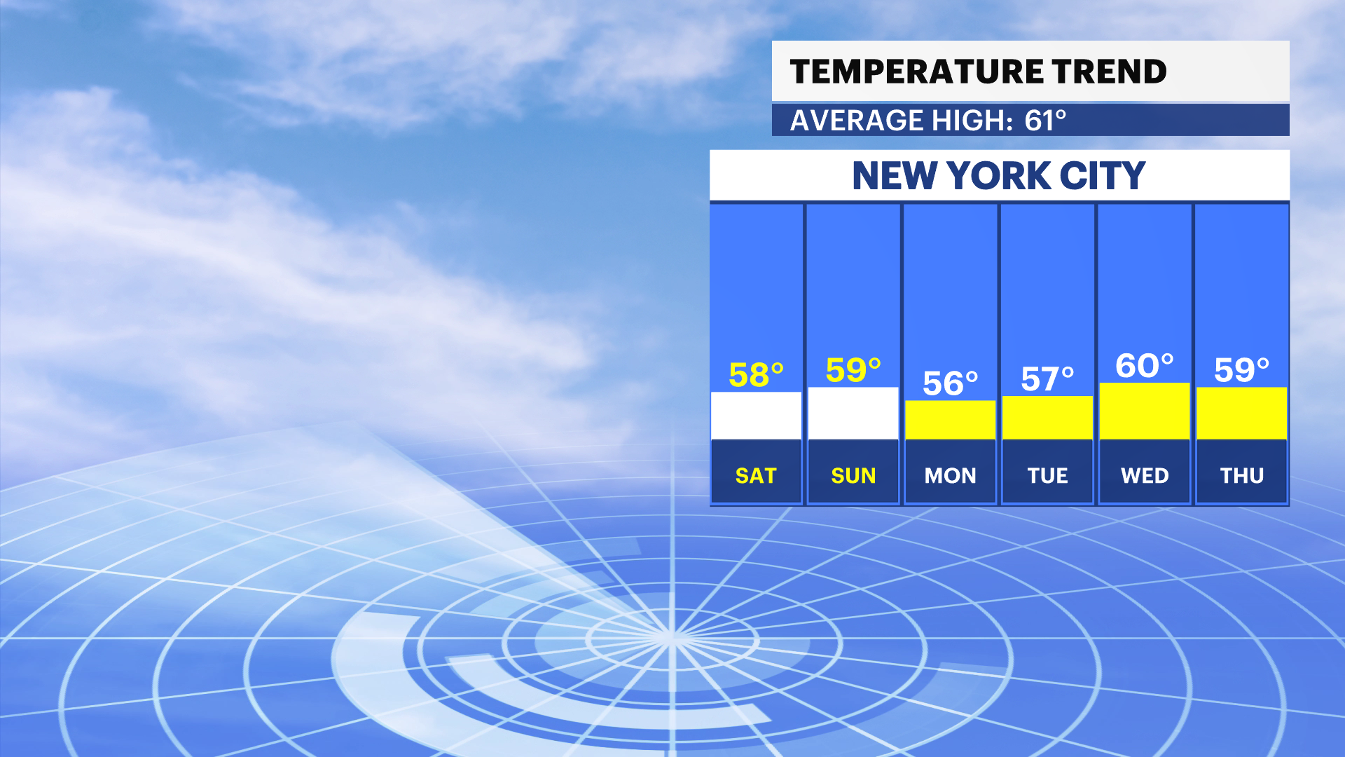 SUNDAY: Similar to Saturday. Highs in the upper 50s. Mix of sun and clouds.