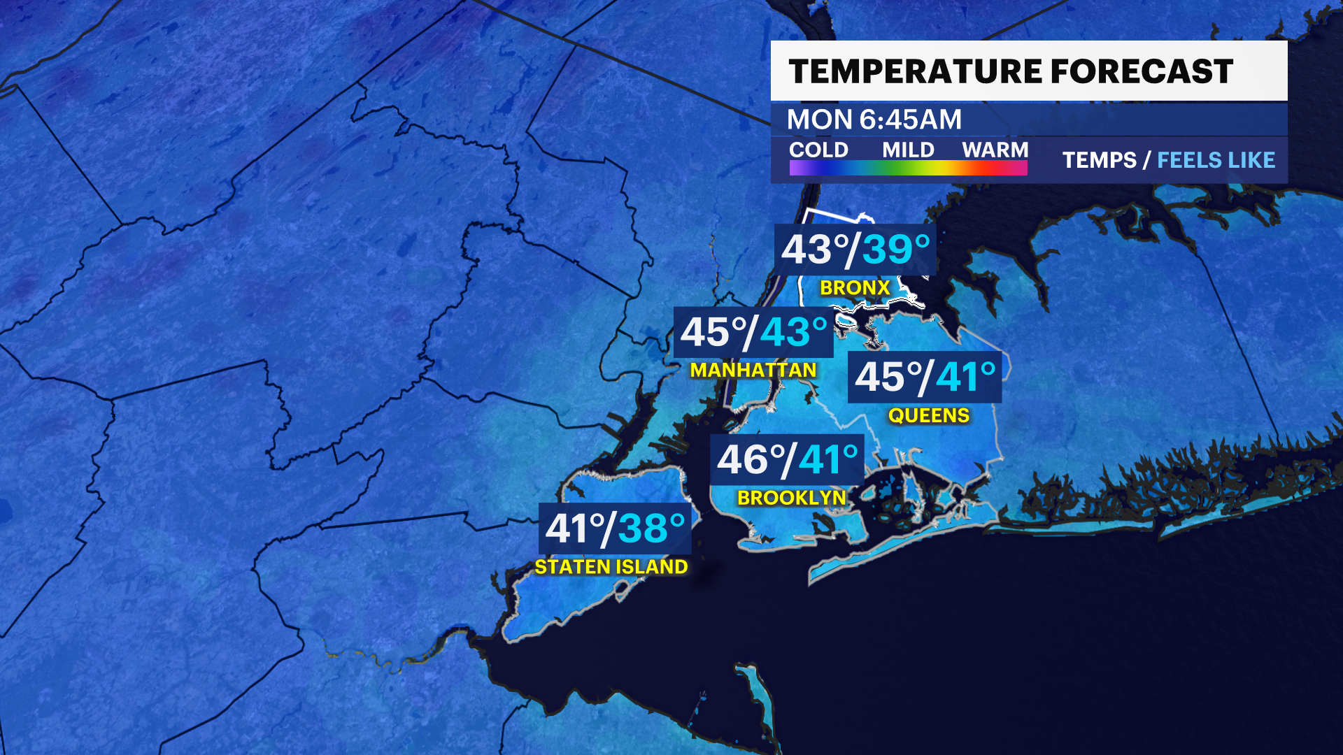 MONDAY: More clouds. Highs in the low to mid 50s.