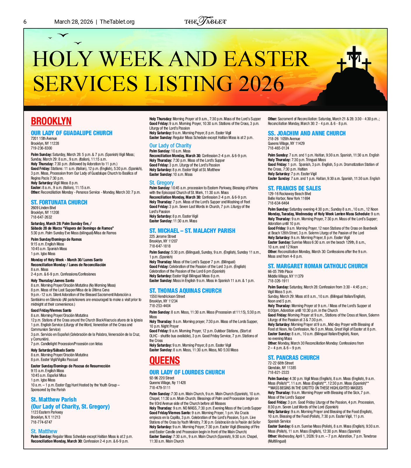 A series of Holy Week and Easter liturgies will be occurring across the Diocese of Brooklyn.