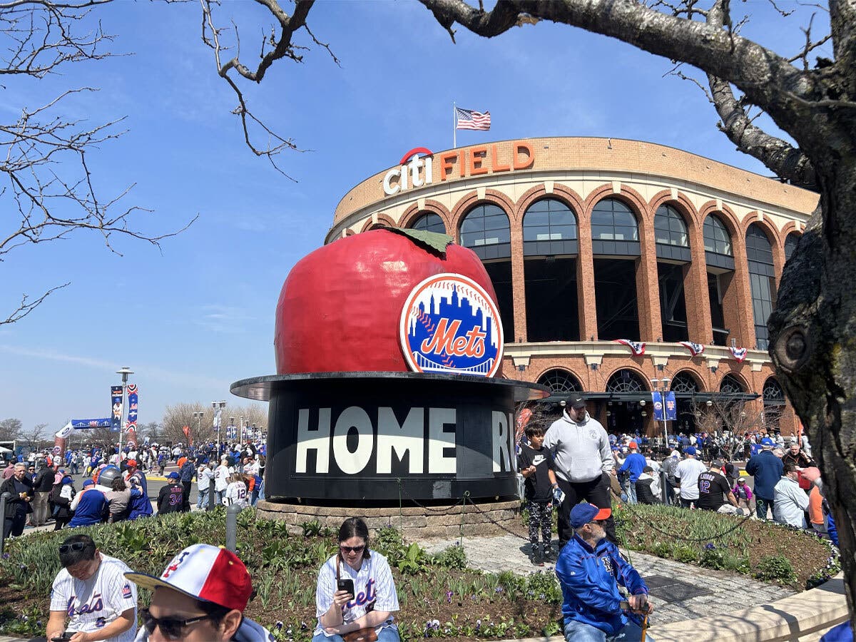 The atmosphere was no different at Citi Field, where the hope of a new season was in the air as fans flocked off the 7 train and out toward the ballpark, greeted by the old Shea Stadium apple and a “block party” that the Mets had put on along the side of the stadium.