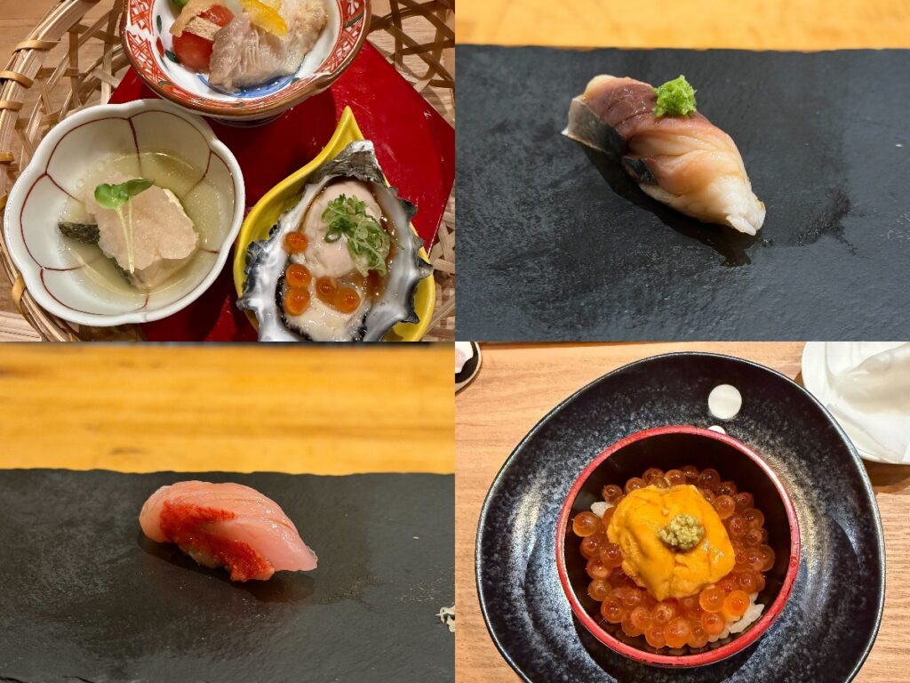 Different plates within the 17-dish Omakase offering at Sushi Kaito.