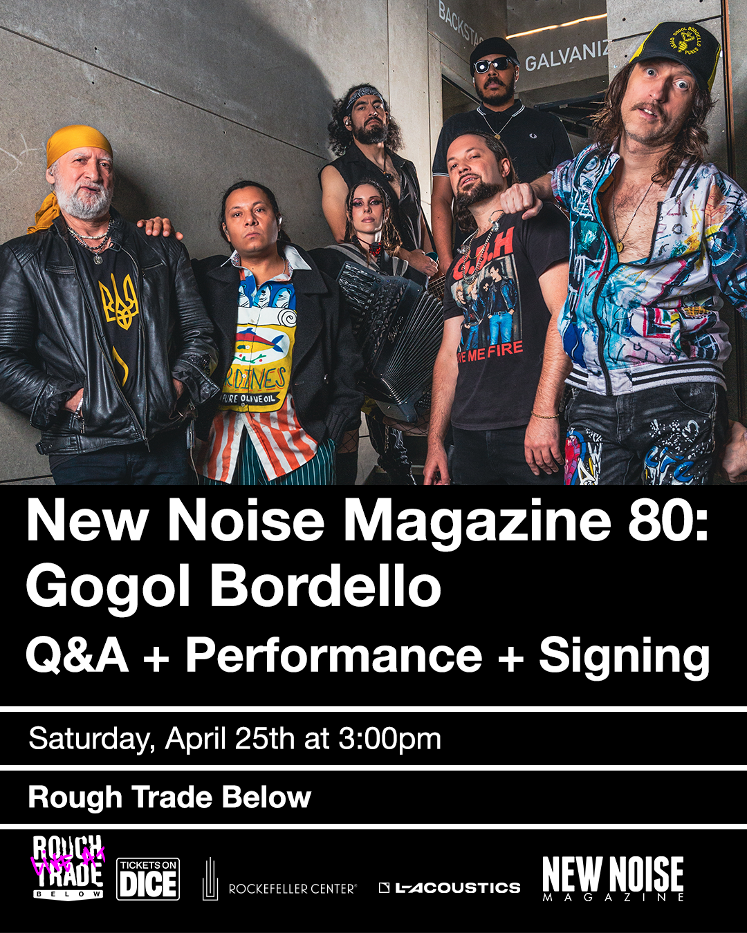 Ukrainian punk rockers Gogol Bordello grace the front cover of New Noise Issue 80 and will be celebrating the issue at Rough Trade NYC (located at 30 Rockafeller Plaza, in the basement) on Saturday, April 24.