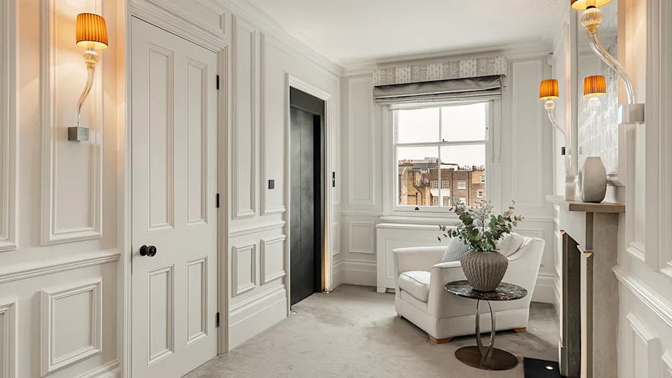A sitting area outside the elevator.